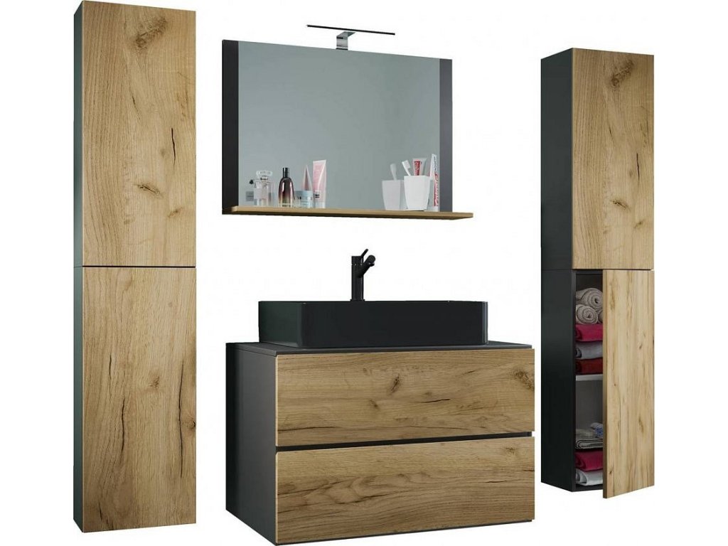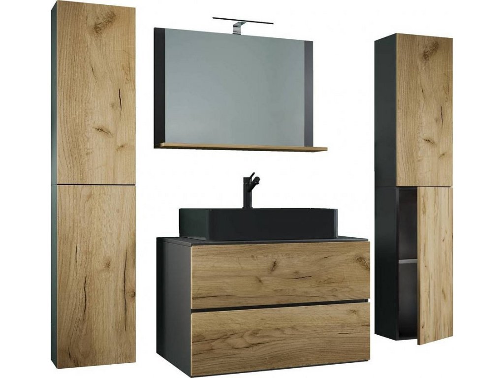 5dílná umyvadlová skříňka Lendas BL XL 80 cm se zrcadlem a 2 vysokými skříňkami, antracitová