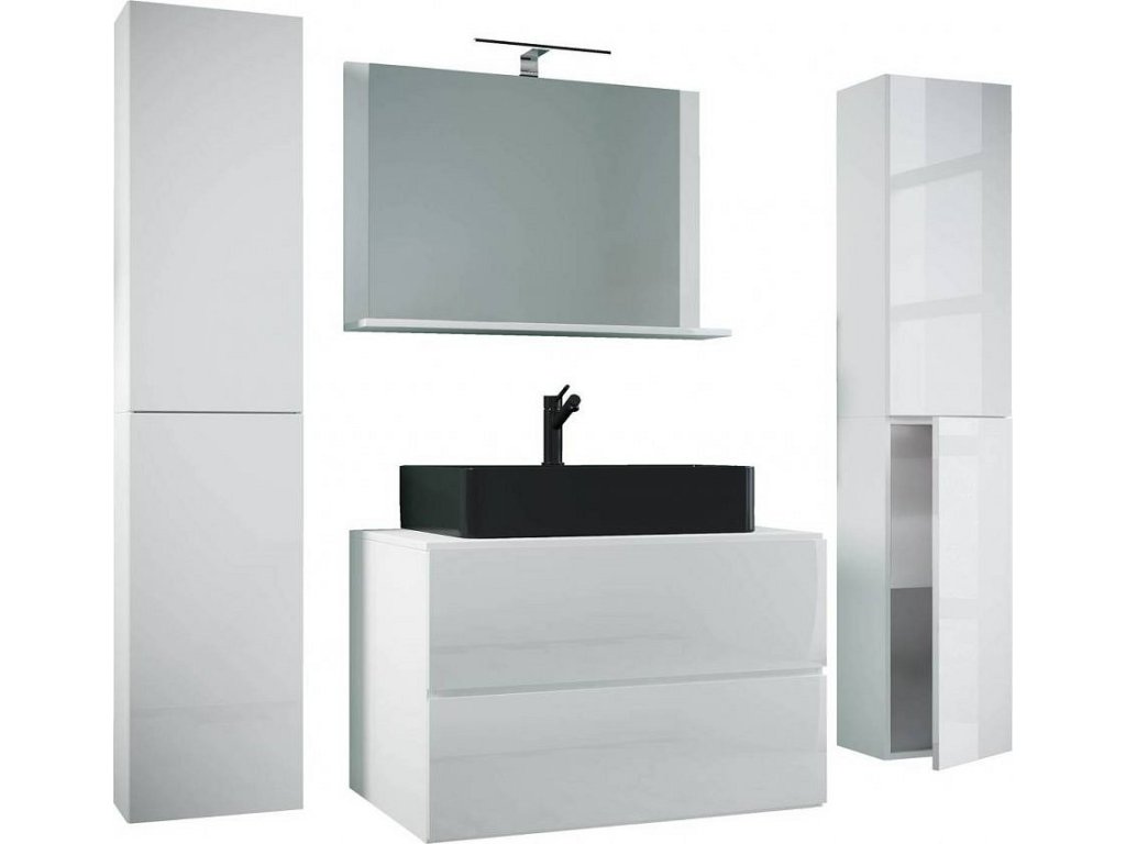 5dílná umyvadlová skříňka Lendas BL XL 80 cm se zrcadlem a 2 vysokými skříňkami, bílá