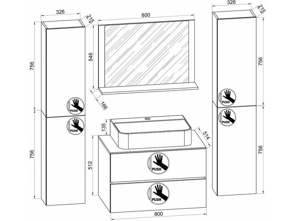 Sada obsahuje: - 1x skříňka pod umyvadlo se dvěma zásuvkami - 1x keramické umyvadlo - 1x zrcadlo s poličkou - 2x vysoká skříňka Sada koupelnového nábytku se skládá ze dvou vysokých skříněk a skříňky pod umyvadlo se dvěma zásuvkami na robustních kovových kolejnicích. Nábytek je vybaven praktickou funkcí otevírání push-to-open. Moderní umyvadlo z masivní keramiky doplňuje nábytek a vytváří tak perfektní poutač v koupelně. Skříňka pod umyvadlo - Rozměry cca v. 52 x š. 80 x h. 52 cm - Korpus s robustním a odolným melaminovým povlakem - Dvě velké zásuvky s odolnými kovovými výsuvy Umyvadlo: - Rozměry cca v. 17 x š. 60 x h. 42 cm - Vyrobeno z robustní keramiky Zrcadlo: - Rozměry cca v. 55 x š. 80 x h. 17 cm - Jedna police pro perfektní organizaci - Sklo z bezpečnostního skla ESG Vysoká skříňka: - Rozměry cca v. 150 x š. 33 x h. 22 cm - 2 police pro rozdělení. Jednotku lze kombinovat s dalším koupelnovým nábytkem „VCM Badinos“ a osvětlením „VCM Blino“. Od 70. let 20. století se VCM specializuje na návrh, výrobu a distribuci nábytku s férovým poměrem cena/výkon a již zkrášlil miliony domácností.