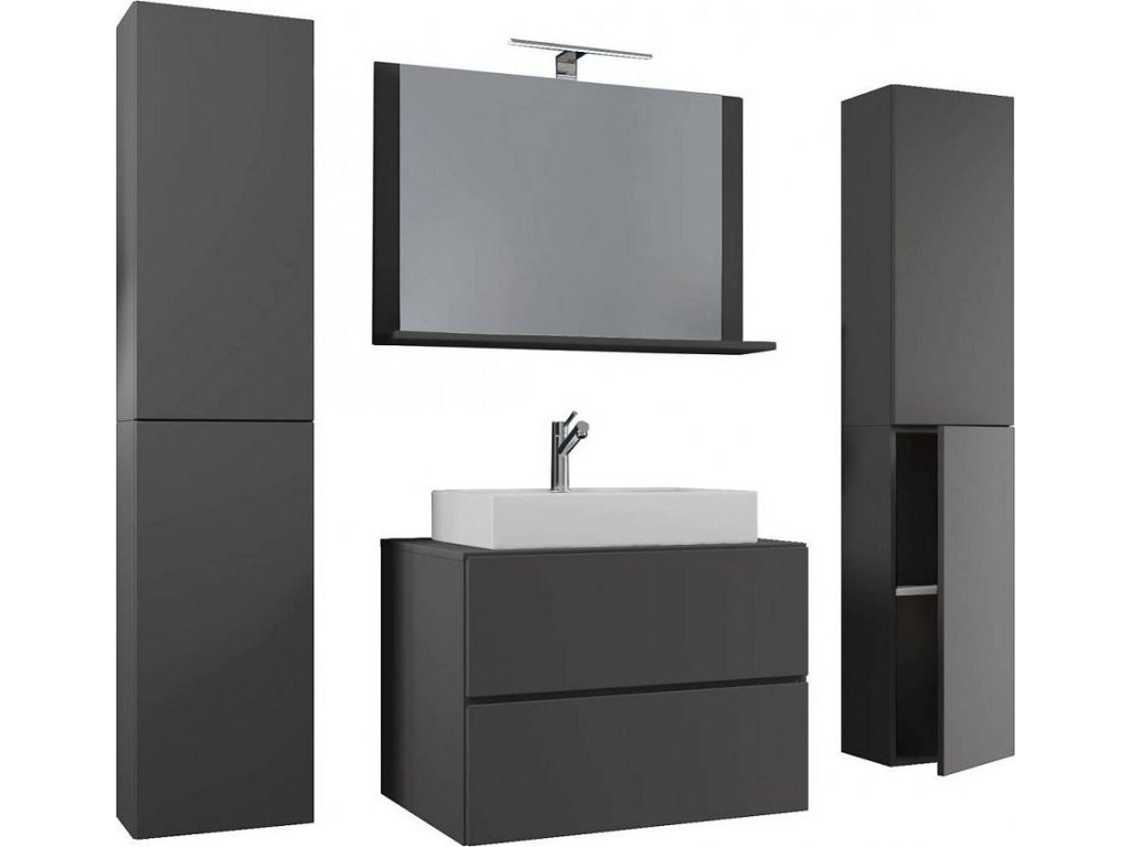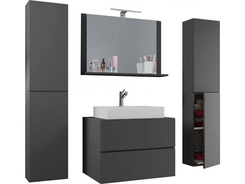 5dílná umyvadlová skříňka Lendas XL 60 cm se zrcadlem a 2 vysokými skříňkami, antracitová
