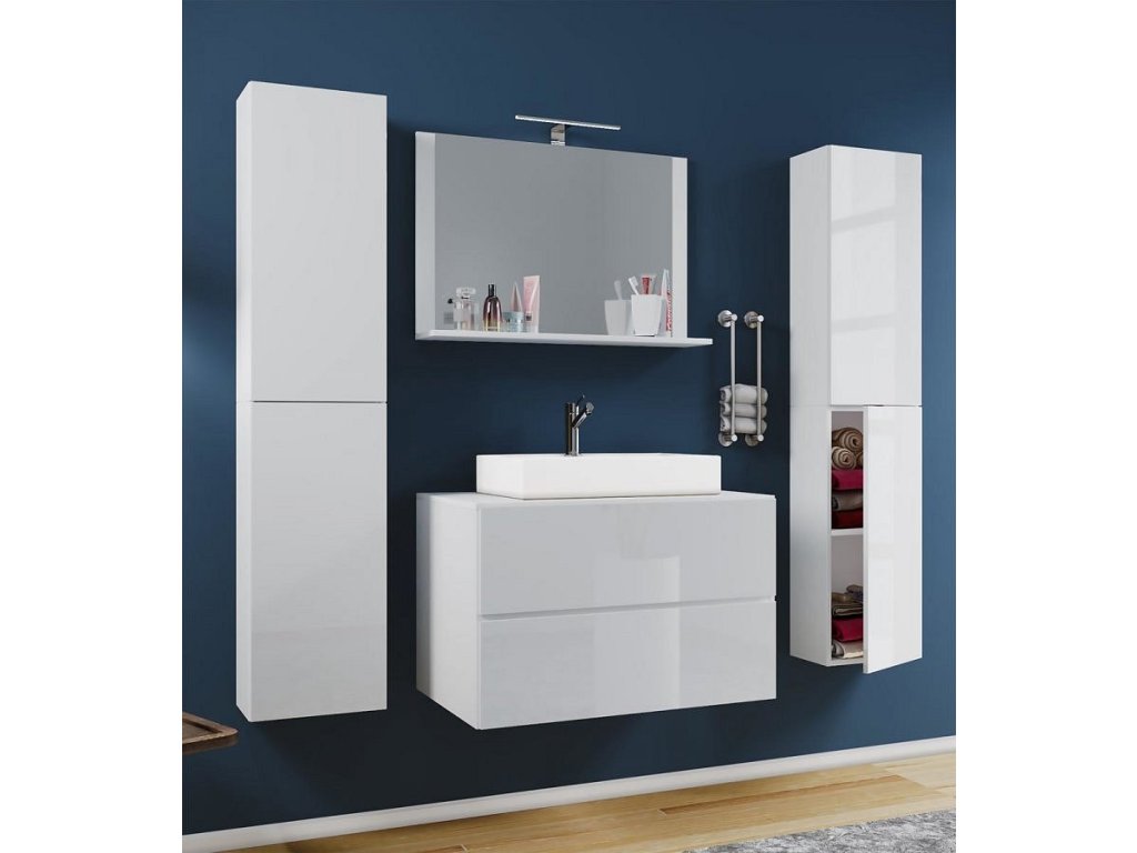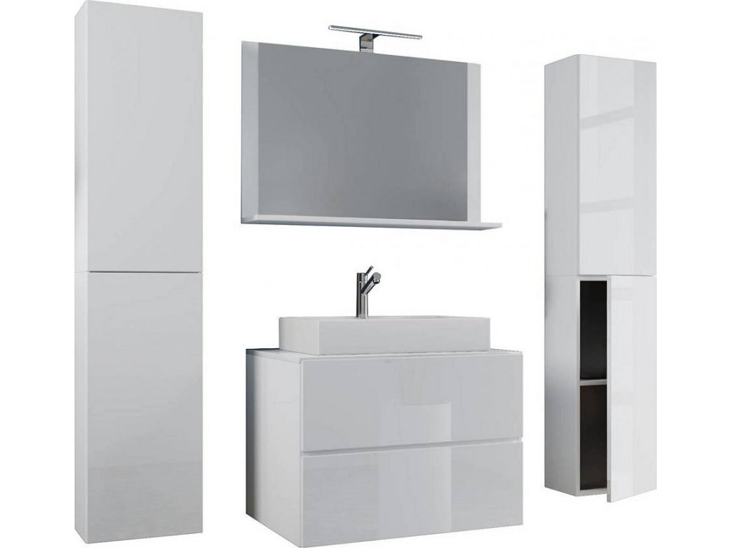 5dílná umyvadlová skříňka Lendas XL 60 cm se zrcadlem a 2 vysokými skříňkami, bílá