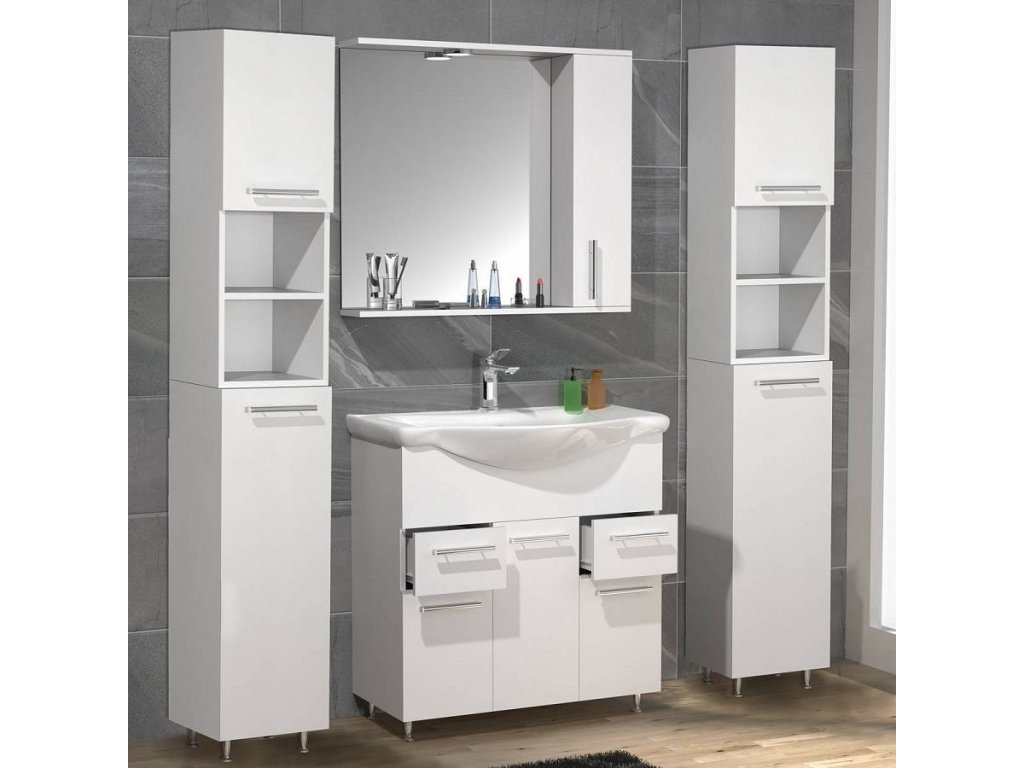 - 1x skříňka pod umyvadlo se třemi otočnými dvířky a dvěma zásuvkami