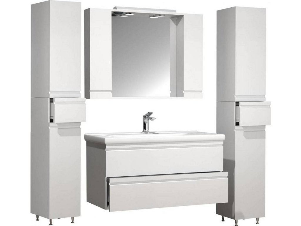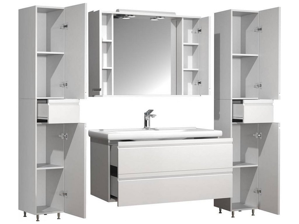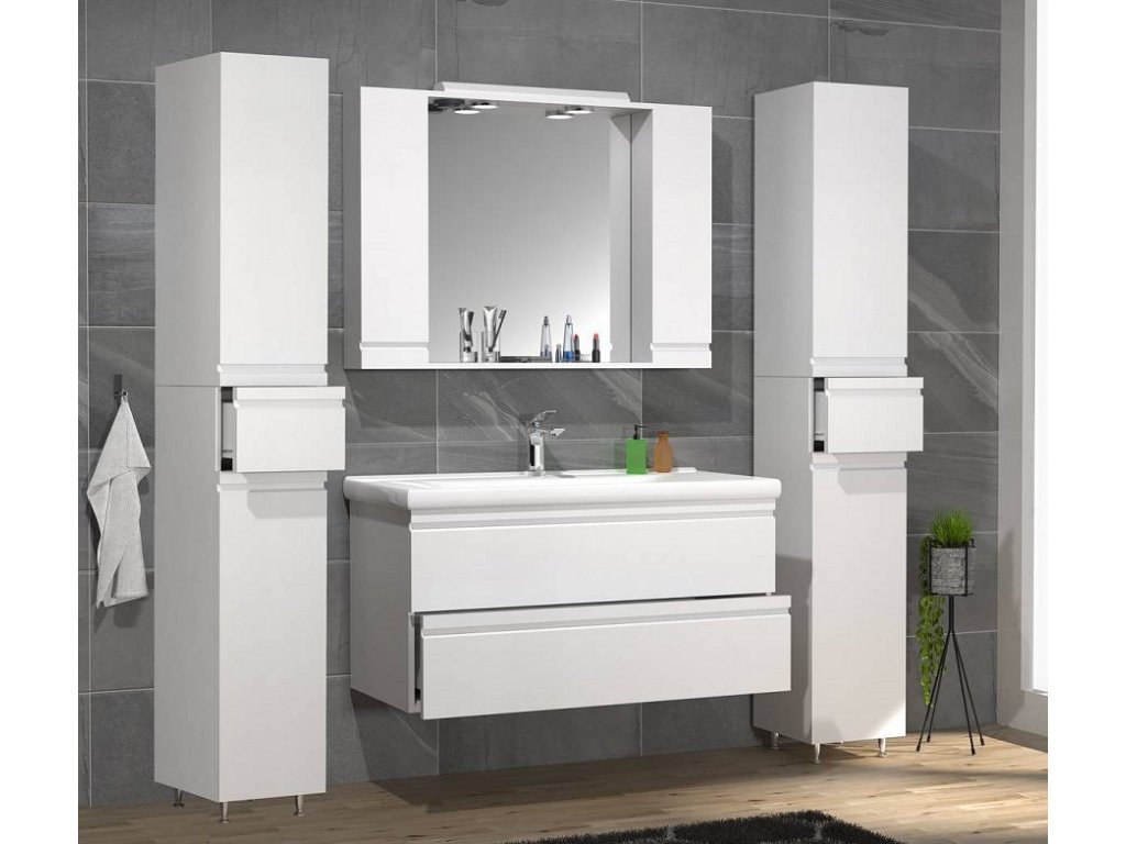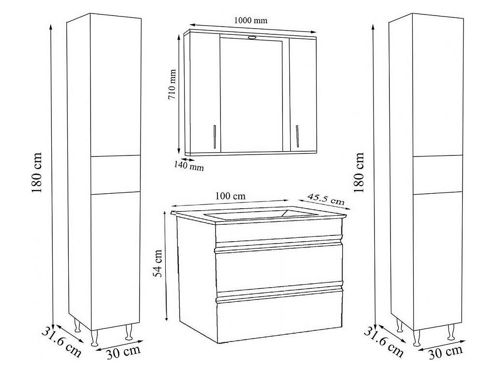 Sada se skládá z: - 1x spodní skříňky se dvěma zásuvkami - 1x keramického umyvadla - 1x zrcadlové skříňky - 2x vysoké skříňky. Koupelnová sada VCM "Silora" se skládá ze spodní skříňky se dvěma zásuvkami a umyvadlem z masivní keramiky, zrcadlové skříňky a dvou vysokých skříňek. Designér záměrně zvolil bezúchytková čela, aby nábytek nadčasově splynul s okolím. Skříňka pod umyvadlo: - Rozměry V 54 x Š 100 x H 46 cm - Korpus s robustním a odolným melaminovým povlakem - Dvě bezúchytkové zásuvky Umyvadlo: - Rozměry Š 100 x H 46 cm - Vyrobeno z robustní keramiky Zrcadlová skříňka: - Rozměry V 71 x Š 100 x H 14 cm - Korpus s robustním a odolným melaminovým povlakem - Dvoje výklopné dveře Vysoká skříňka: - Rozměry V 180 x Š 30 x H. 32 cm - Korpus s robustním a odolným melaminovým povlakem - Dvoje otočné dveře a jedna zásuvka Koupelnovou sestavu lze doplnit dalším koupelnovým nábytkem ze série „Silora“. VCM se specializuje na návrh, výrobu a distribuci nábytku s férovým poměrem cena/výkon již od 70. let 20. století a vyzdobila jím miliony domácností.