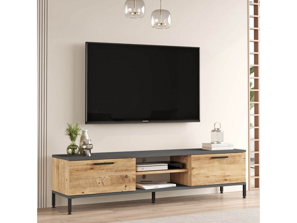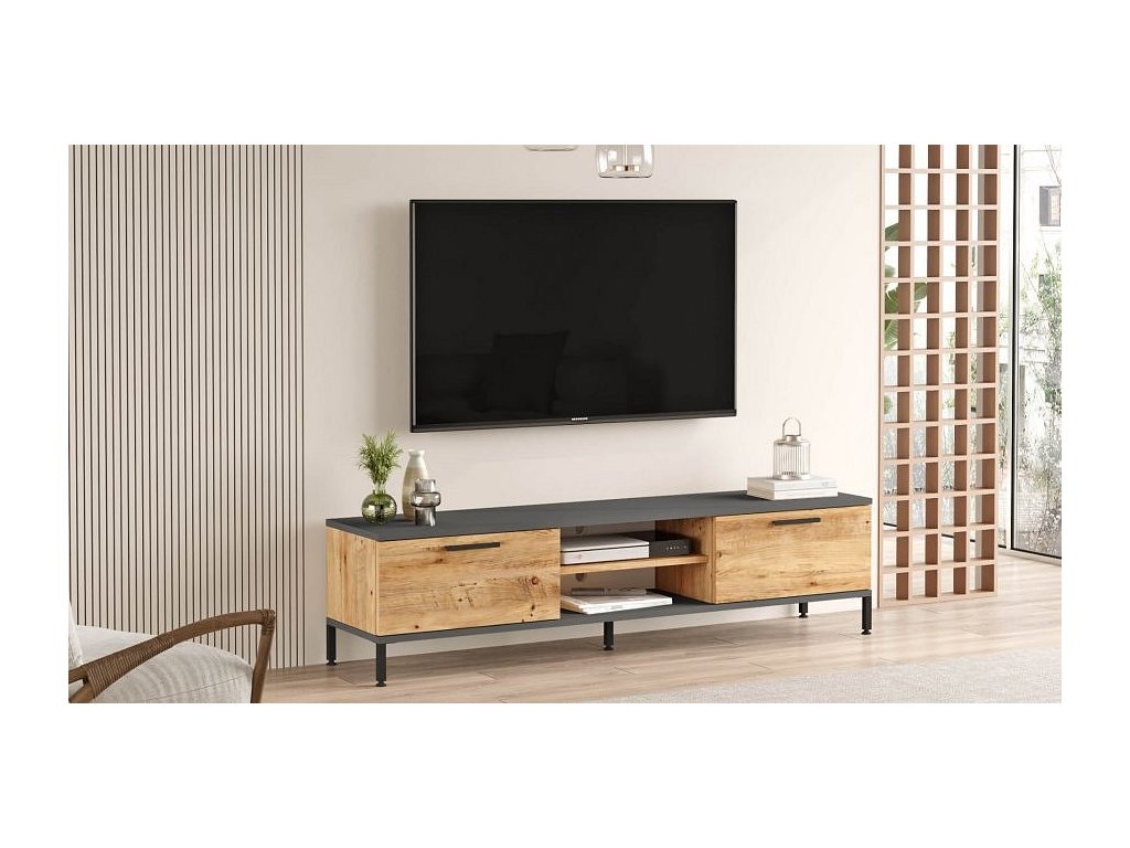 Typ zboží: stolek TV. Navržený s ohledem na dnešní moderní domovy, je ideální volbou pro váš obývací pokoj, kancelář či pracovnu. S jeho loftovým a industriálním stylem přinese do vašeho prostoru jedinečný design.