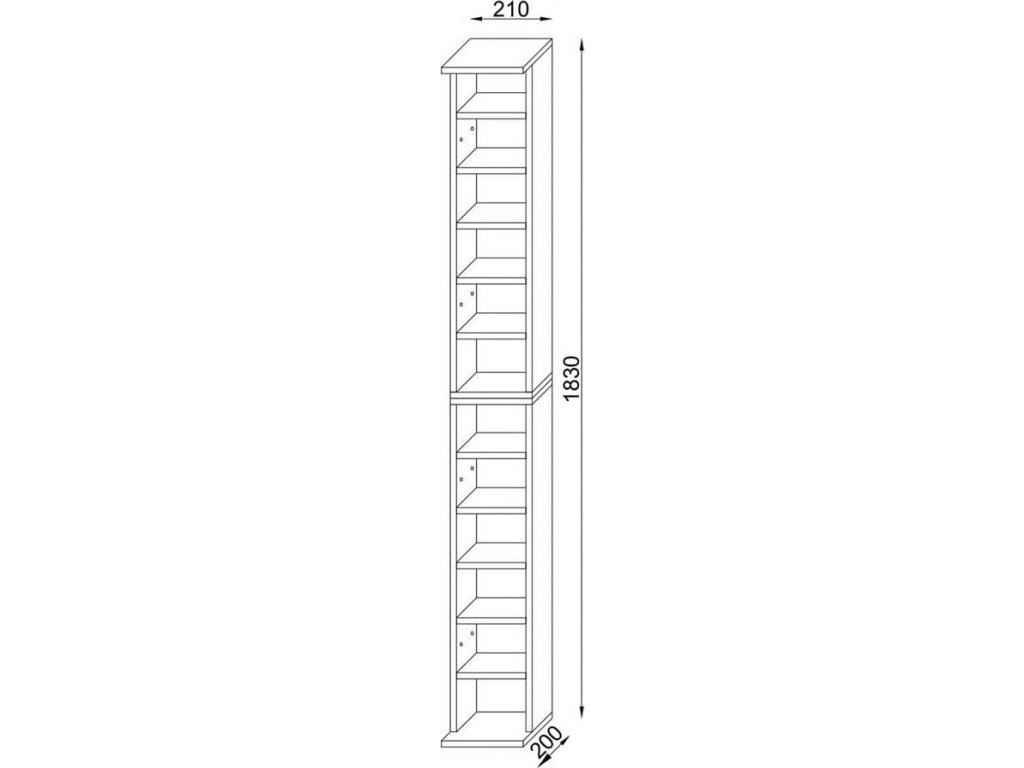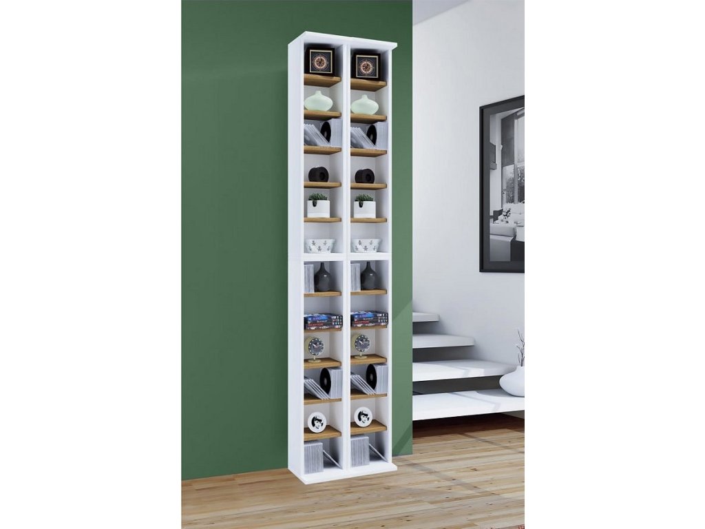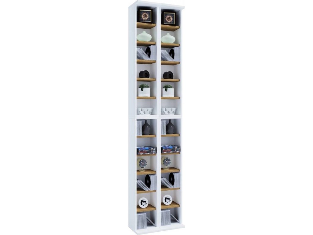 Archivní systém VCM „Almera“ pro 408 CD nebo 144 DVD nebo 80 videí. - Reprodukce dřevěné struktury. - 20 variabilních polic. - V demontovaném stavu včetně montážního návodu a montážního materiálu. - Rozměry: V 175 x Š 42 x H 20 cm