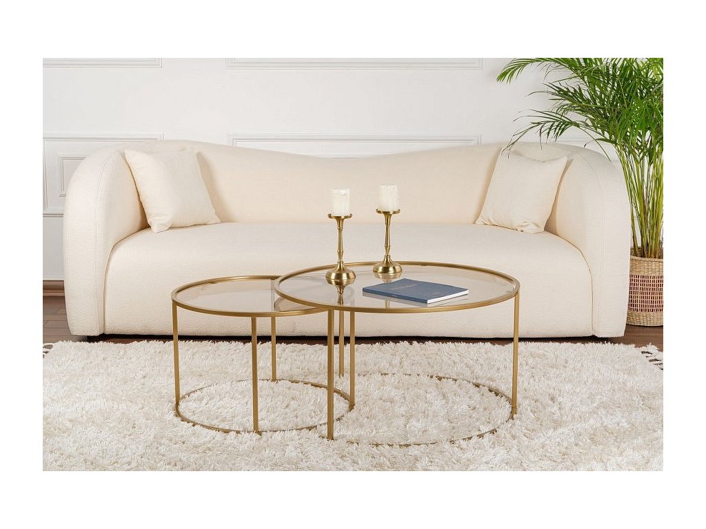 Dodejte svému domovu nádech moderní elegance s touto nádhernou sadou konferenčních stolků. Kombinace zlaté a bronzové barvy vytváří luxusní a nadčasový vzhled, který ohromí vaše hosty a promění váš obývací pokoj v ústřední bod vašeho domova.
