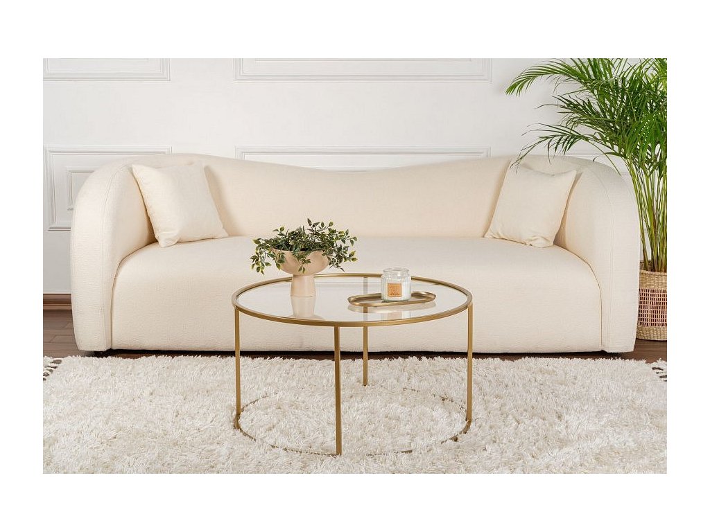 Proměňte svůj obývací pokoj s naším úžasným konferenčním stolkem ve zlaté a průhledné barvě. Tento nádherný kus nábytku není jen kusem nábytku, ale uměleckým dílem, které pozvedne styl vašeho domova. Vrchní deska ze 100% tvrzeného skla dodává nádech elegance, zatímco kovový rám zajišťuje odolnost a stabilitu.