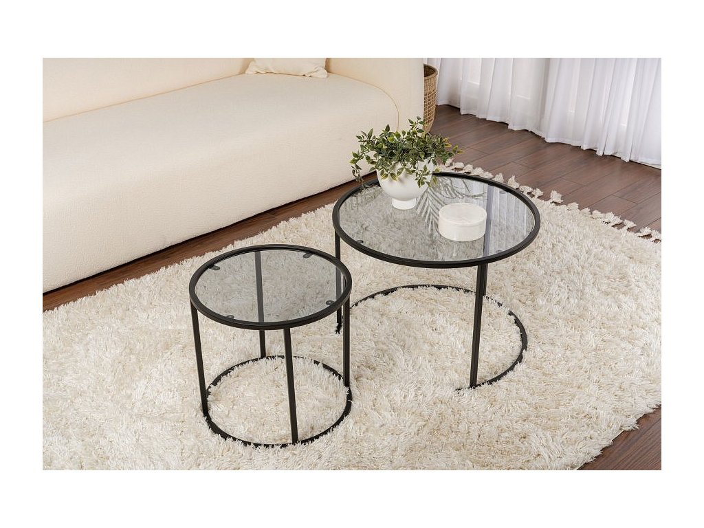 Proměňte svůj obývací pokoj ve stylový a sofistikovaný prostor s naší úžasnou sadou konferenčních stolků. Tato sada, vyrobená ze 100% tvrzeného skla a s robustním kovovým rámem, vyzařuje eleganci a odolnost. Elegantní design a moderní barevná paleta černé a šedé okamžitě pozvednou váš domov a vytvoří elegantní a příjemnou atmosféru pro vás i vaše hosty.