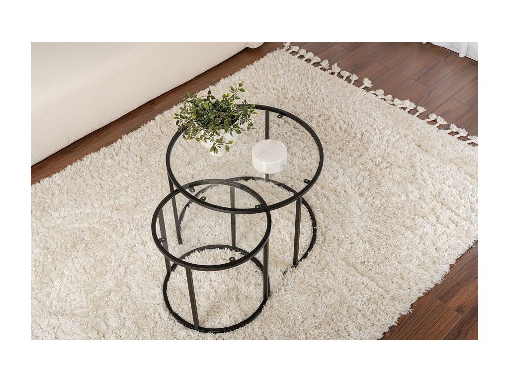Aurum sada kulatých konferenčních stolků, černá / transparent