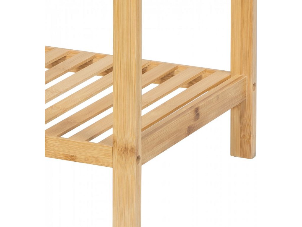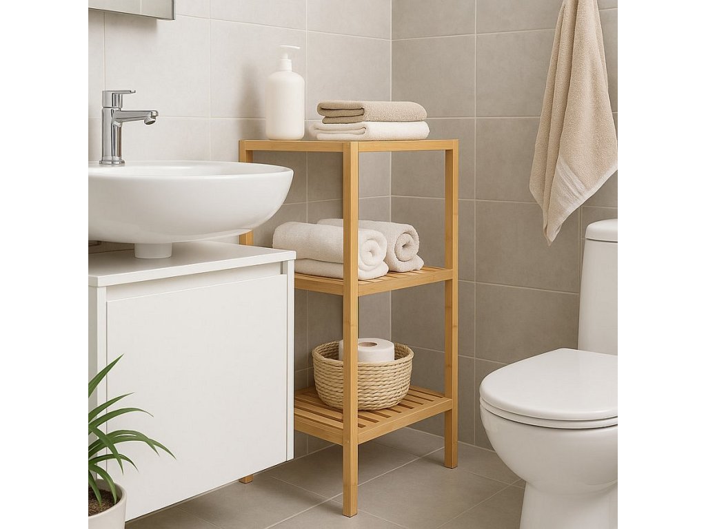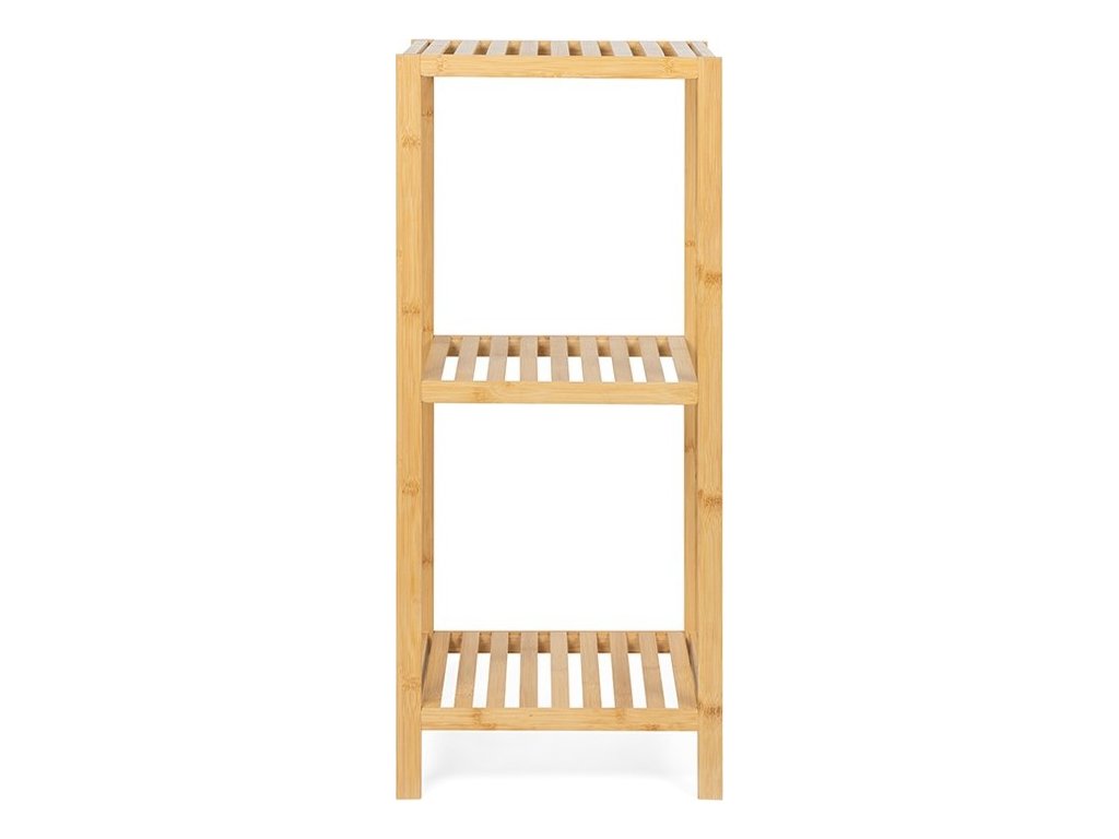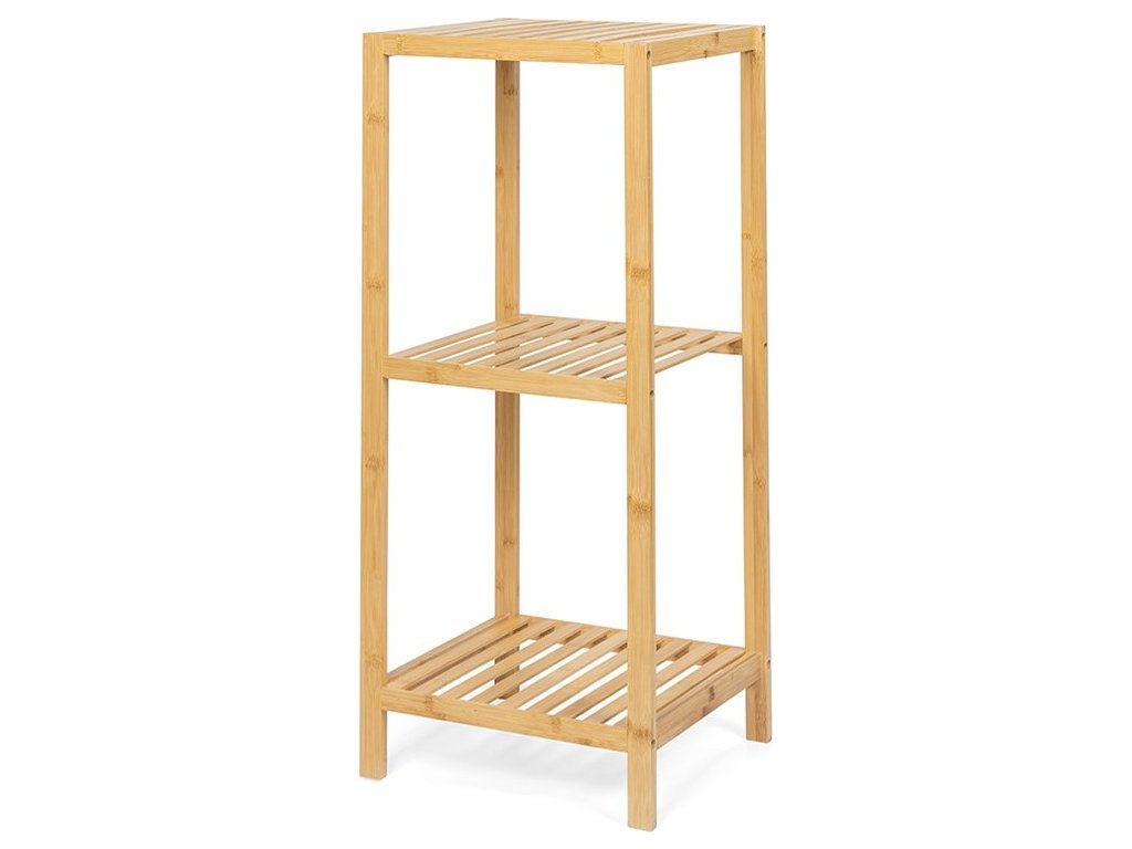 Praktický policový díl s třemi úložnými policemi. Vyroben z odolného bambusu, který je pevný a ekologický. Otevřená konstrukce umožňuje snadný přístup k uloženým věcem. Všestranné využití v koupelně, kuchyni, předsíni nebo ložnici. Jednoduchý a přirozený design, který se hodí do různých interiérů.