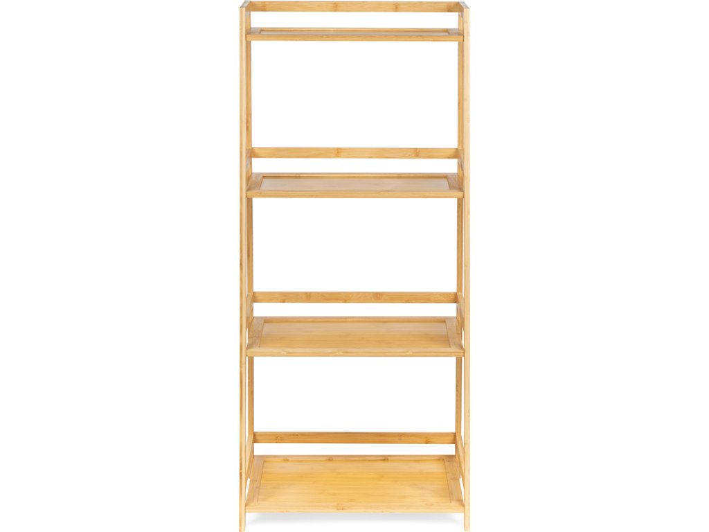 Stylový policový díl s pěti úložnými policemi. Vyroben z pevného a odolného bambusu. Stupňovitá konstrukce s mírným sklonem působí moderně a odlehčeně. Prostorné police vhodné pro knihy, dekorace, rostliny či koupelnové doplňky. Univerzální využití v obývacím pokoji, kuchyni, ložnici i koupelně. Jednoduchý a funkční design, který se hodí do různých interiérů.