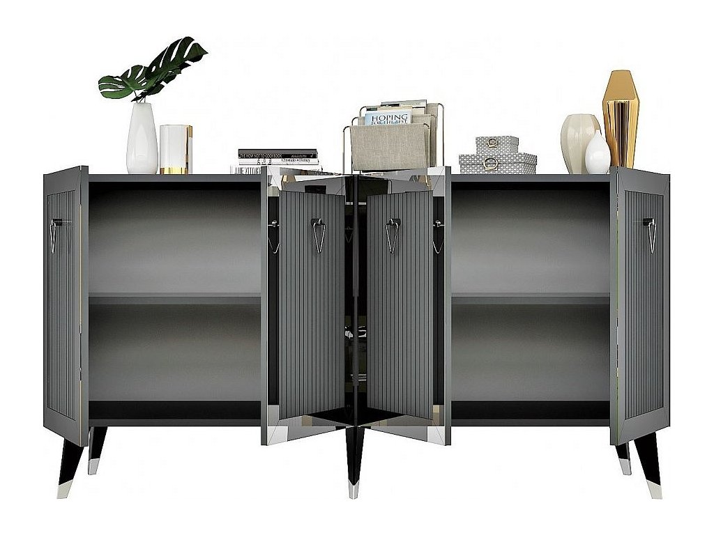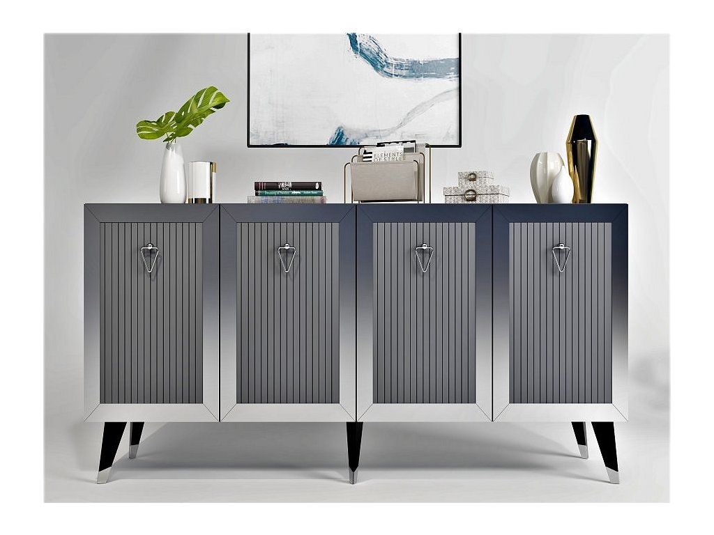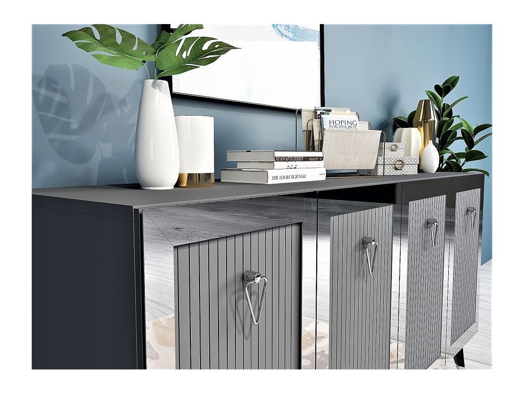 Díky svému elegantnímu a modernímu designu se tato komoda bez problémů začlení do jakéhokoli interiéru, ať už moderního nebo tradičního. Kombinace antracitové a stříbrné barvy vytváří výrazný kontrast, díky čemuž se stane ústředním bodem každé místnosti.