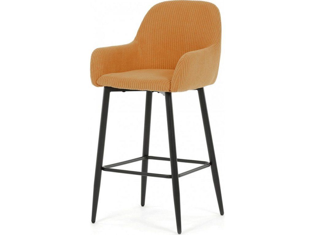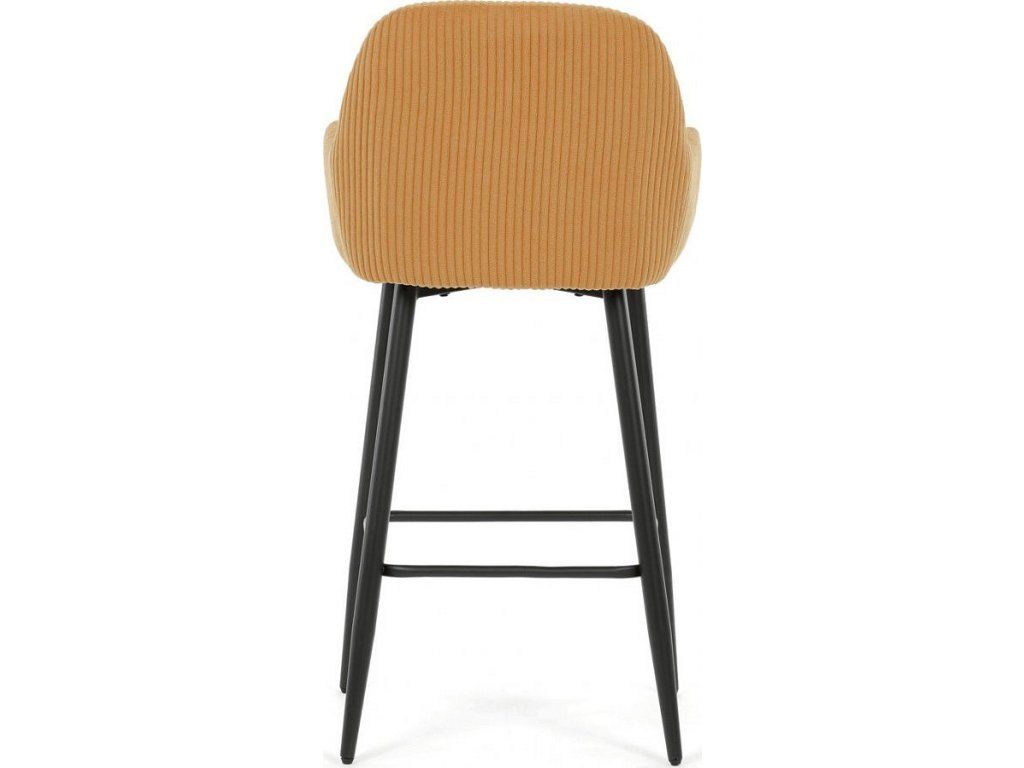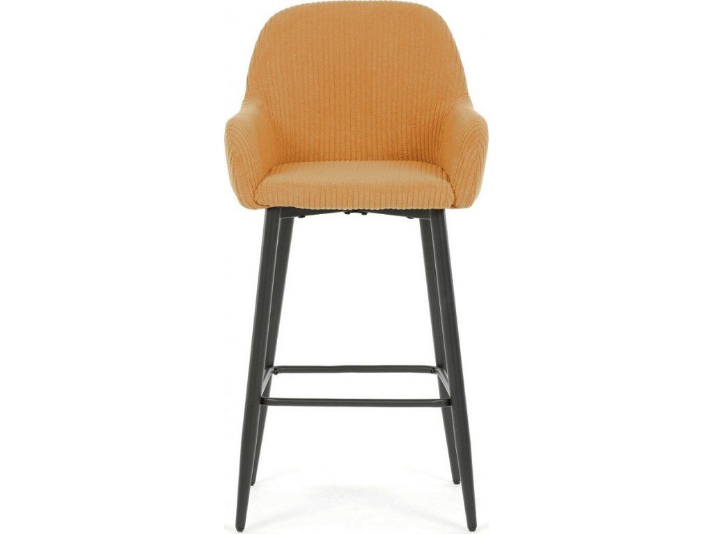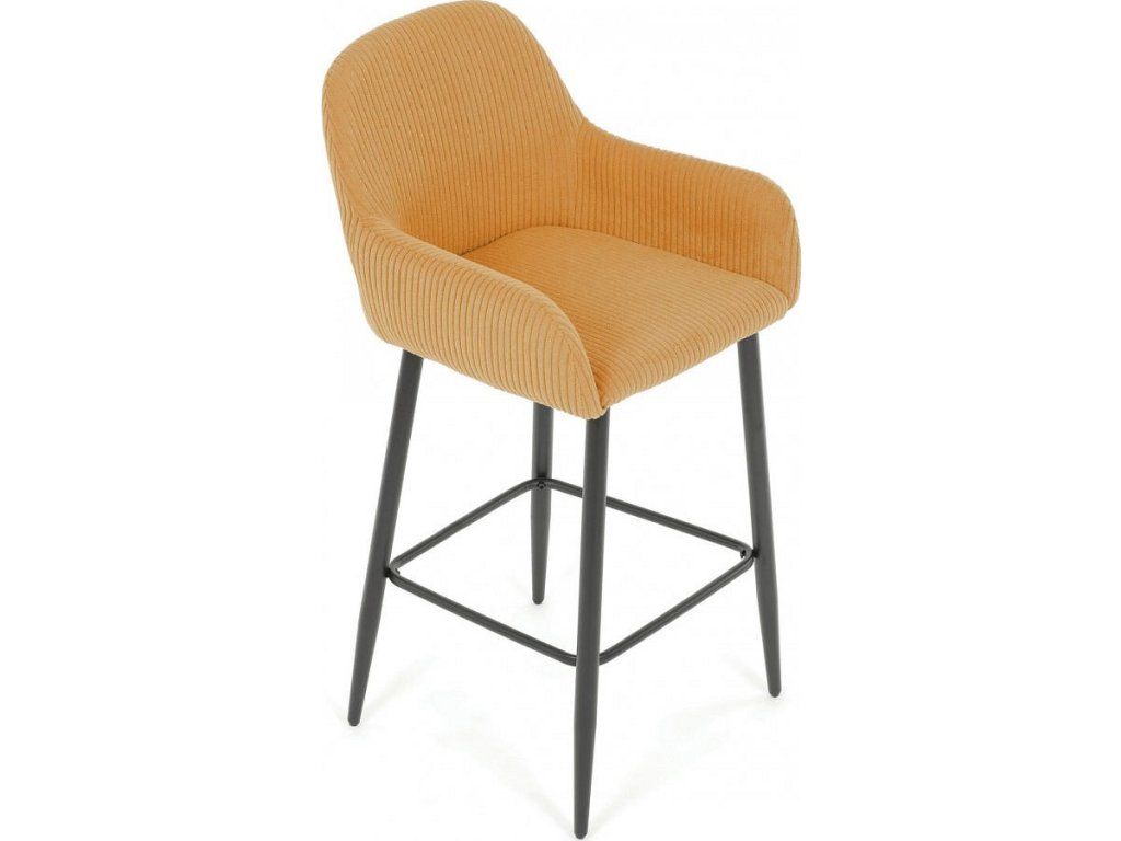 Barová židle s područkami vyniká potahem z žluté manšestrové látky, která nabízí příjemnou texturu a snadnou údržbu. Pevná kovová podnož v černém provedení zajišťuje stabilitu a dlouhou životnost. Ergonomicky tvarované opěradlo a integrované područky poskytují komfortní oporu při sezení u barového pultu či vysokého stolu. Židle není otočná, což přispívá k její pevnosti a jednoduchému designu. Je vhodná pro komerční i domácí prostředí, kde je kladen důraz na styl i funkčnost.