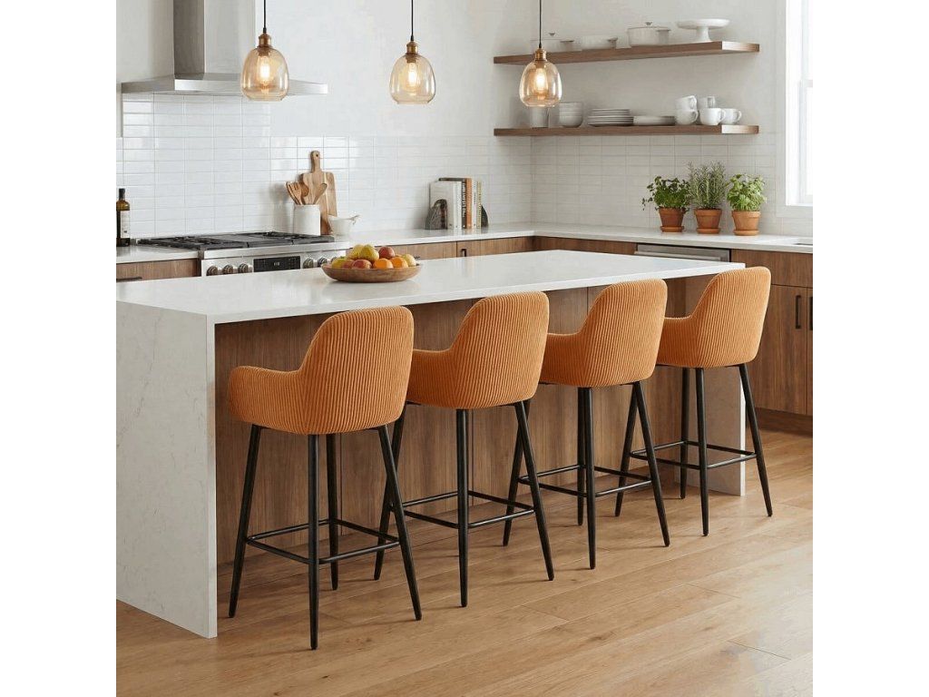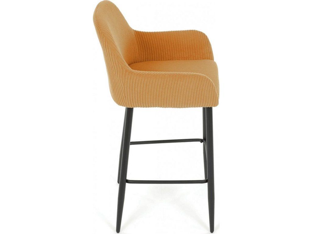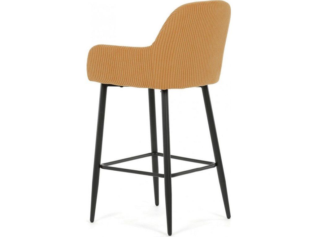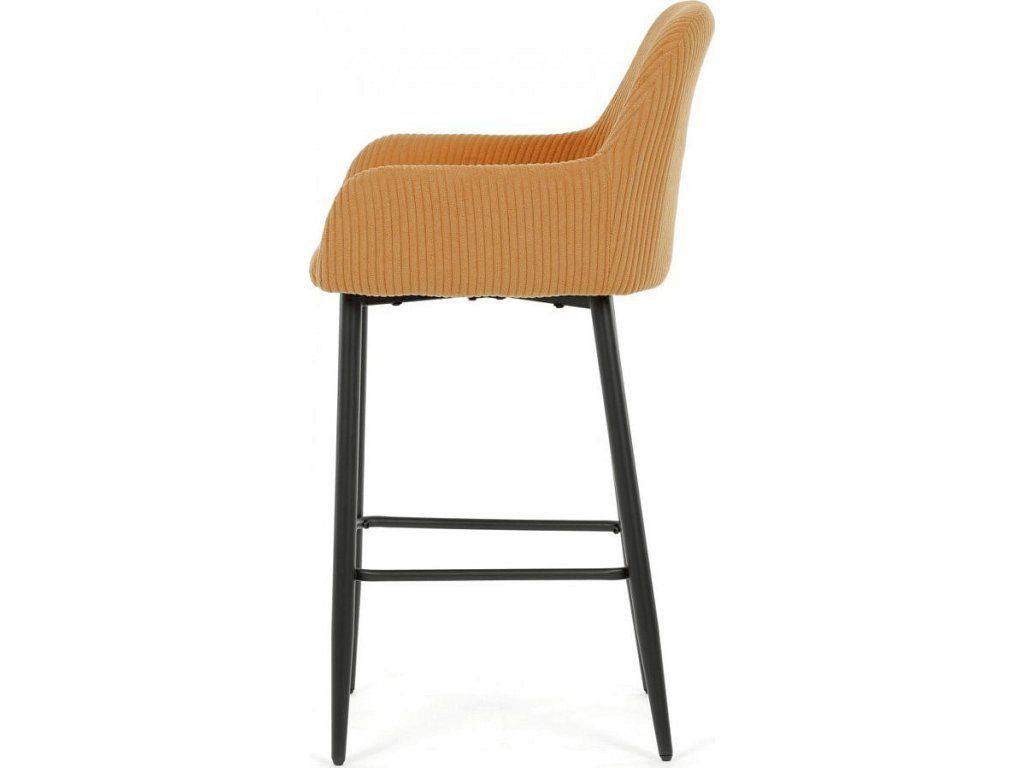 Barová židle s područkami vyniká potahem z žluté manšestrové látky, která nabízí příjemnou texturu a snadnou údržbu. Pevná kovová podnož v černém provedení zajišťuje stabilitu a dlouhou životnost. Ergonomicky tvarované opěradlo a integrované područky poskytují komfortní oporu při sezení u barového pultu či vysokého stolu. Židle není otočná, což přispívá k její pevnosti a jednoduchému designu. Je vhodná pro komerční i domácí prostředí, kde je kladen důraz na styl i funkčnost.