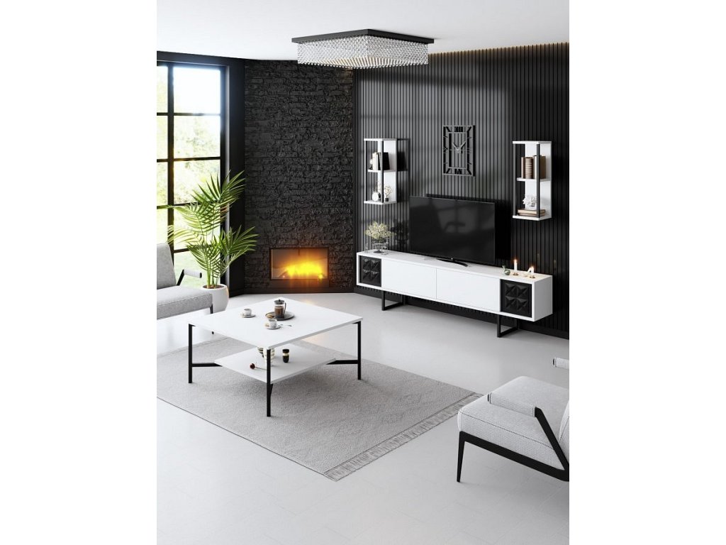 Tento televizní stolek se vyznačuje úžasnou kombinací bílé a černé barvy, která dodá moderní nádech každému obývacímu pokoji. Kontrastní barvy vytvářejí vizuálně atraktivní ústřední bod, díky čemuž je tato skříň stylovým doplňkem vašeho domova.