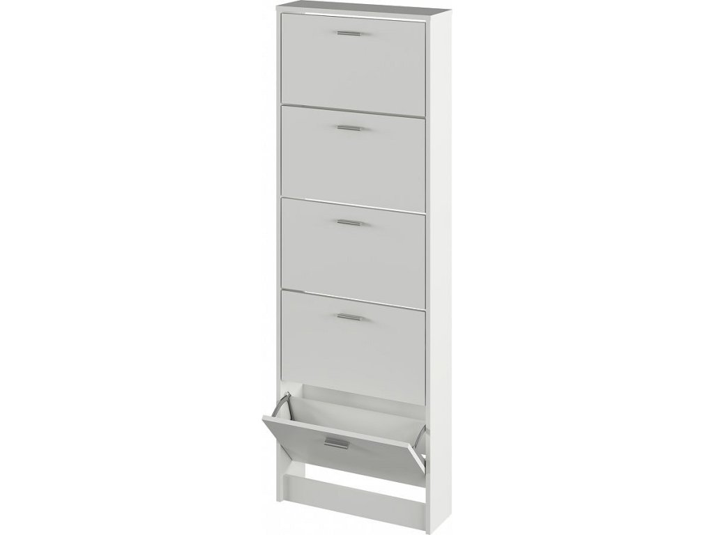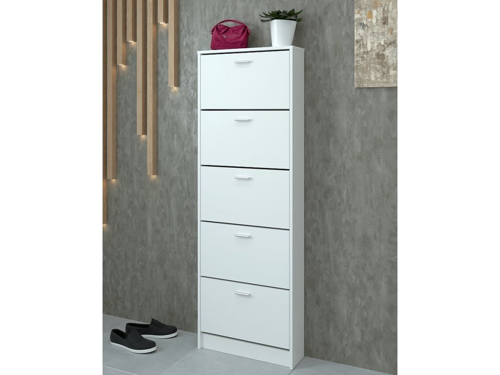 5-řadý botník MOBI 15 Materiál: DTD laminovaná Barva: bílá Rozměry (ŠxHxV): 58x18x170,2 cm Tloušťka materiálu: 1 - 1,6 cm 5 -řadý Výklopné šuplíky Praktický Dodáváno v demontu