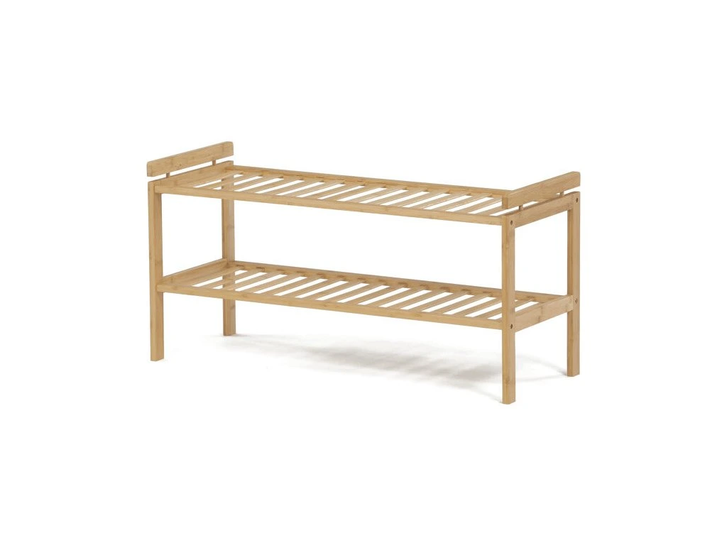 Botník s dvěma policemi je vyroben z masivního bambusu v přírodním odstínu, který zajišťuje pevnost a dlouhou životnost. Otevřená police s vodorovnými latěmi umožňuje efektivní větrání a rychlé schnutí obuvi. Jednoduchý a funkční design botníku se hodí do různých interiérů, kde nabízí praktické řešení pro uskladnění bot. Stabilní rám a rovné nohy zaručují bezpečné a pevné postavení. Rozměry botníku umožňují uložení více párů obuvi bez zbytečné náročnosti na prostor.