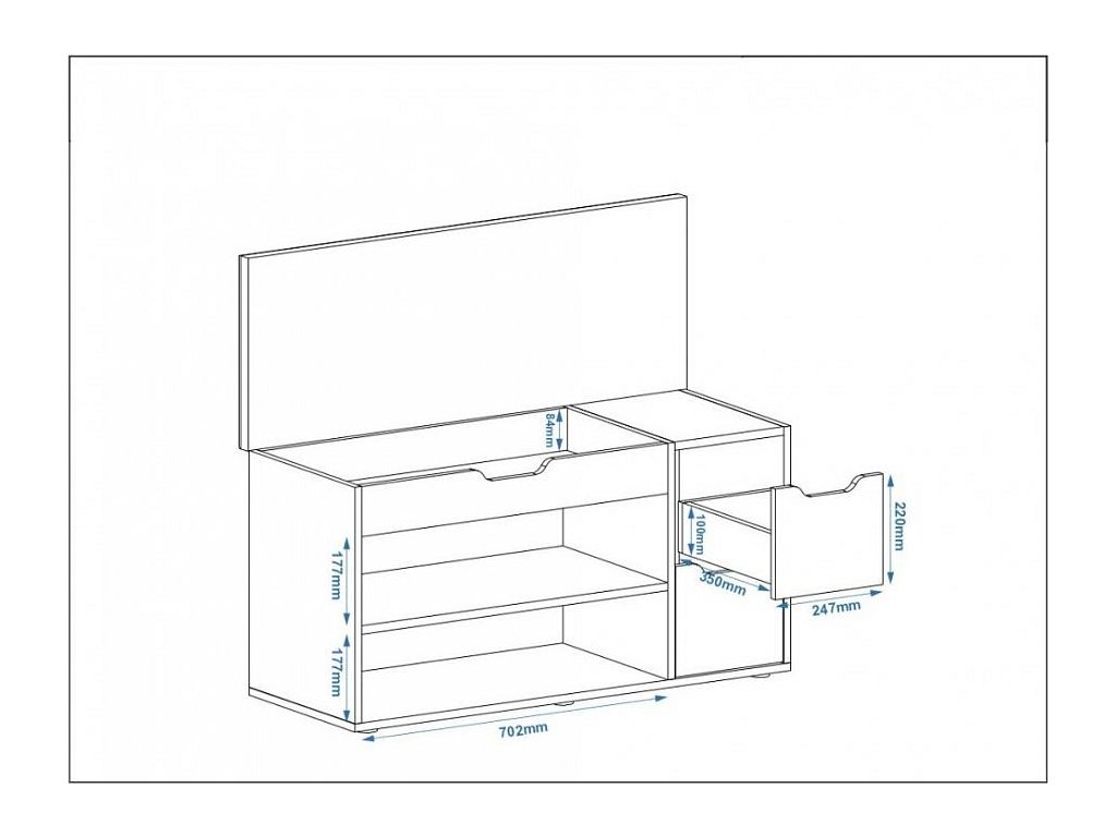 Sedací botník B-07 je ideálním řešením pro každou domácnost, která hledá funkční a stylový kousek nábytku. Tento elegantní botník s praktickým sedákem vám poskytne pohodlné místo k sezení při obouvání, a zároveň vám nabídne spoustu úložného prostoru. S úložnými zásuvkami, policemi na boty a skrytým úložným prostorem pod výklopným sedákem se stane nezbytným pomocníkem ve vaší předsíni.