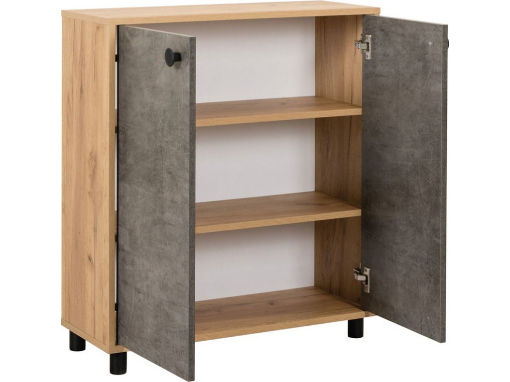 CASA 98262 Botník se dvěma zásuvkami je vyroben z desky LTD, korpus je v barvě dub kraft zlatý, čela zásuvek jsou v barvě tmavý kámen. Nožky jsou v černé barvě. Úchyty jsou z kovu v černé barvě. Dodáváme v demontovaném stavu.