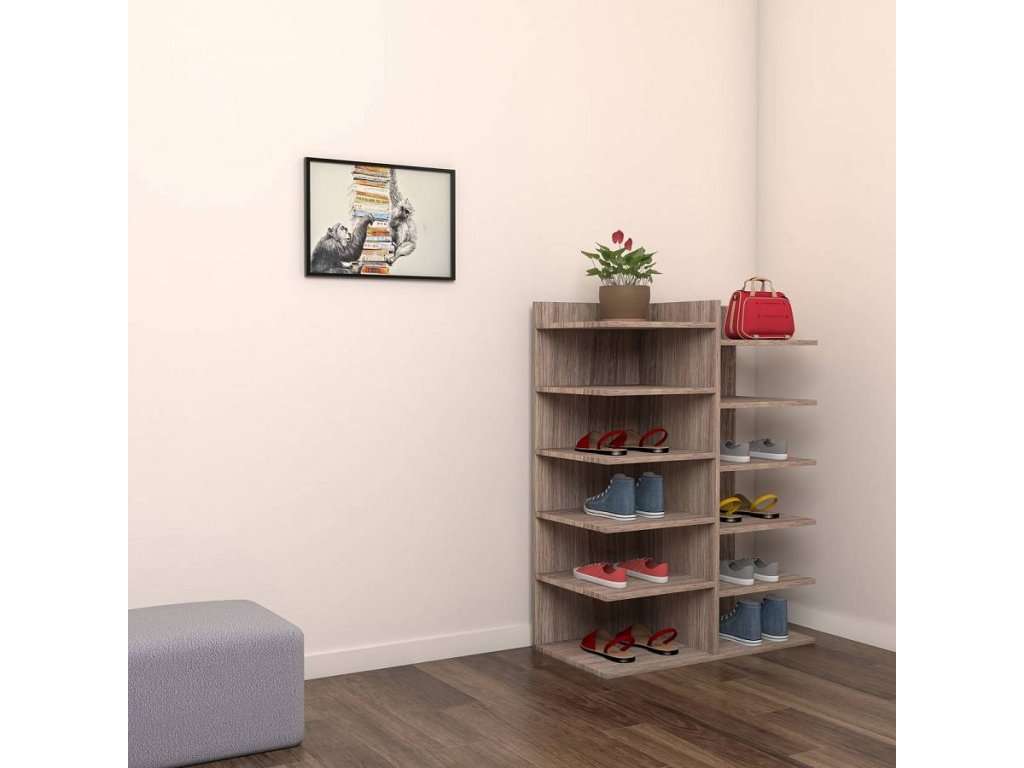 Hlavní vlastnosti: - Kování z vysoce kvalitního kovu - 12 prostorných přihrádek až pro 12 párů bot - Rozměry nábytku: cca š. 60 x v. 80 x h. 30 cm - Rozměry na přihrádku: cca š. 30 x v. 13 x h. 30 cm Botník „Enosa“ je malý prostorový zázrak. Nábytek kombinuje úložný prostor a dekoraci jako žádný jiný kus nábytku. 12 přihrádek umožňuje úhledný úložný prostor pro 12 párů bot nebo jiného náčiní.
