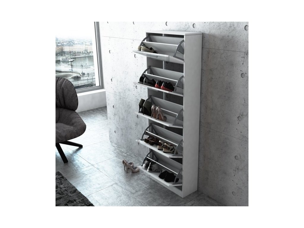 CASA 98221 Pětidveřový výklopný botník v moderním provedení. Korpus z lamina je v barvě matná bílá, dvířka z MDF jsou v bílém lesku. Lamino i MDF jsou odolné vůči vysokým teplotám, poškrábání a nárazům. Dodáváme v demontovaném stavu.