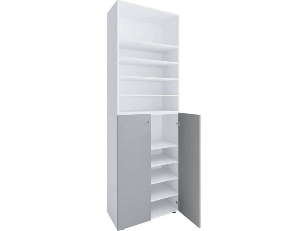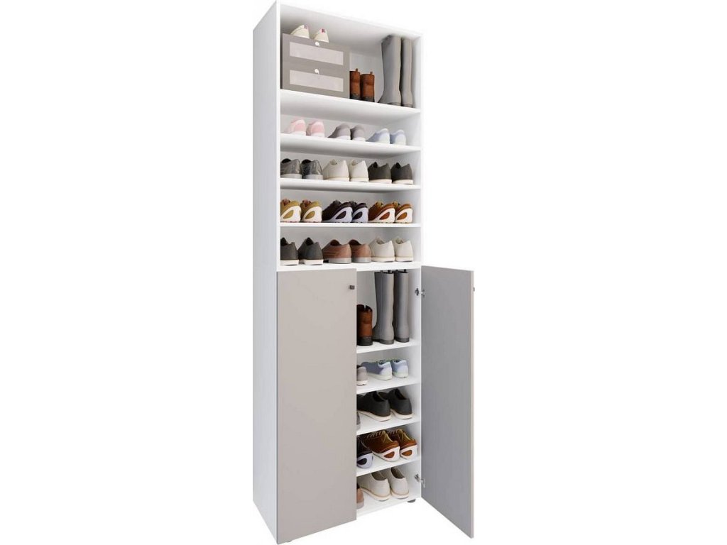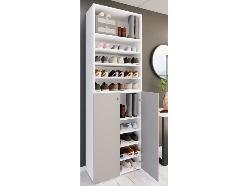 Botník Lona 2XL s 10 přihrádkami, otočné dveře + police, bílá