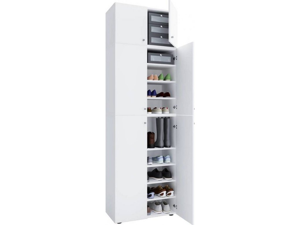 Botník Lona XXL s 9 přihrádkami, otočné dveře s nástavcem, bílá