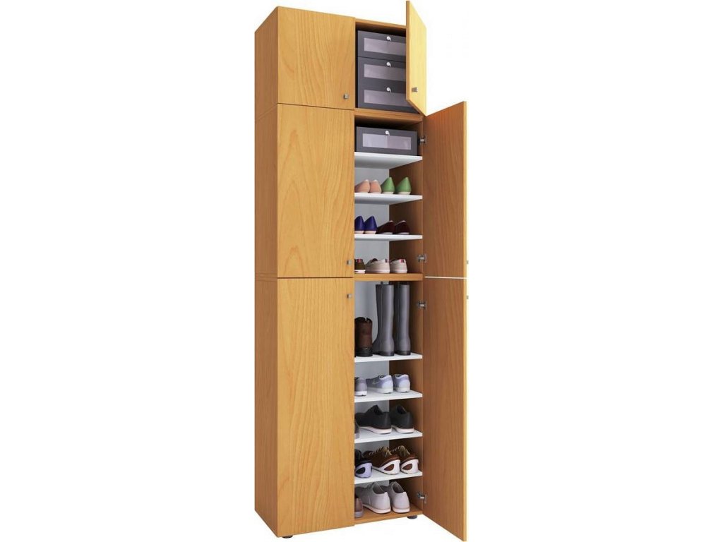 Botník Lona XXL s 9 přihrádkami, otočné dveře s nástavcem, buk