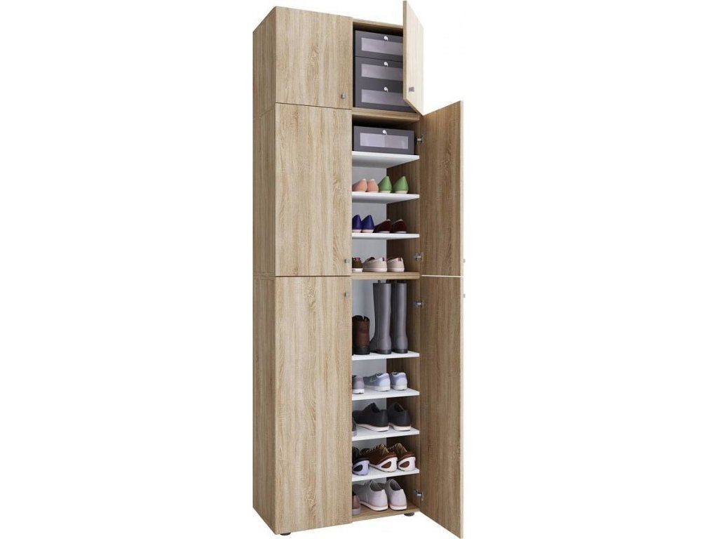 Botník Lona XXL s 9 přihrádkami, otočné dveře s nástavcem, dub sonoma