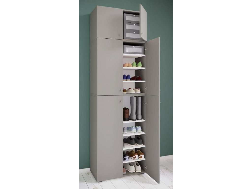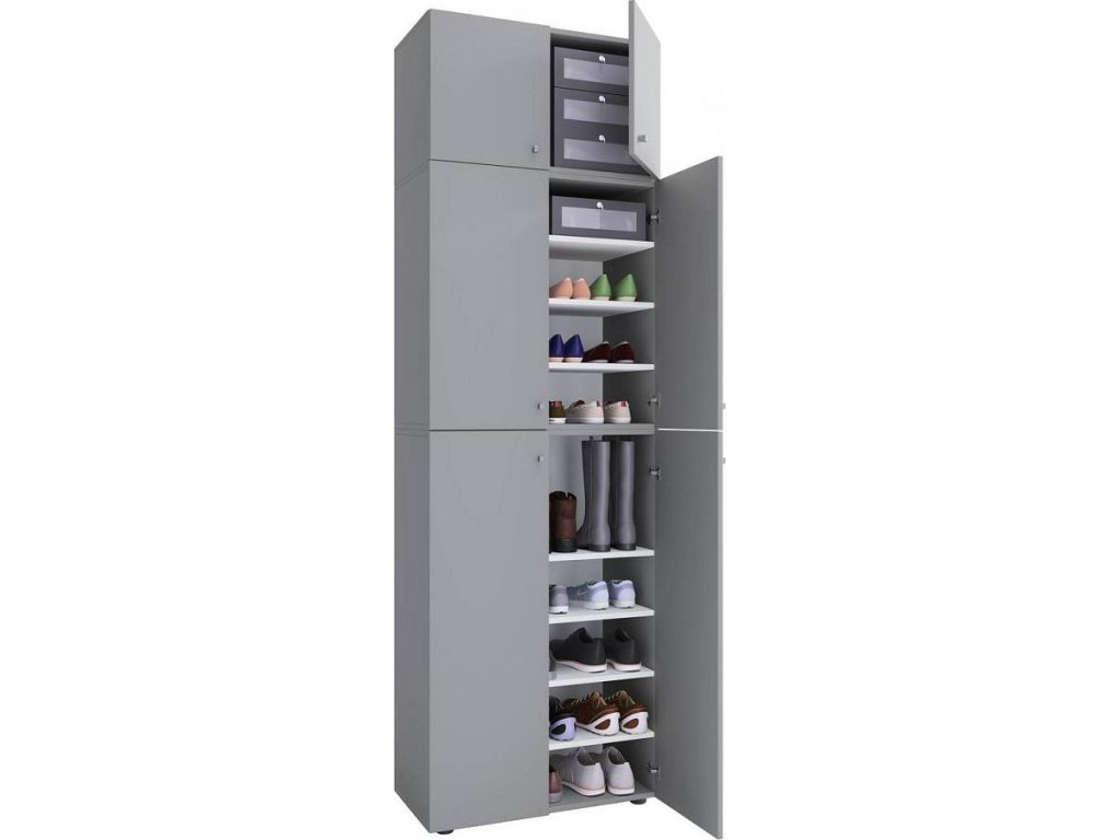 Botník Lona XXL s 9 přihrádkami, otočné dveře s nástavcem, šedý
