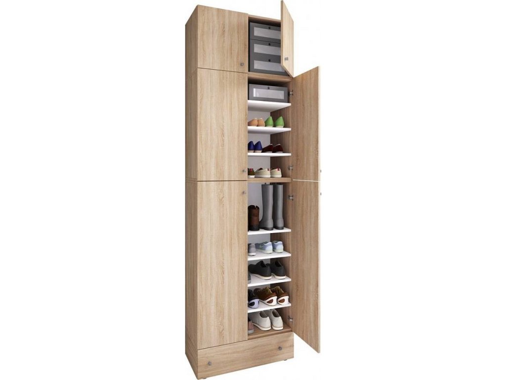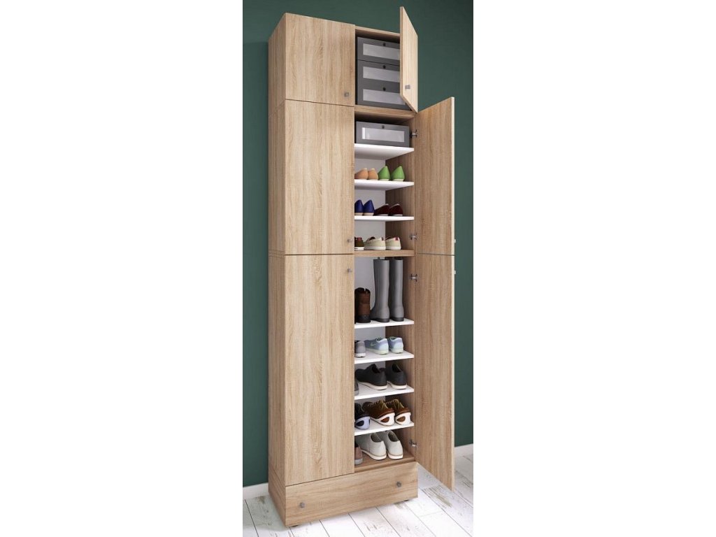 Botník Lona XXL s 9 přihrádkami, otočné dveře s nástavcem a zásuvkou, dub sonoma