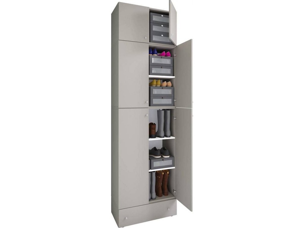 Botník Lona XXL s otočnými dvířky s nástavcem a zásuvkou, šedý