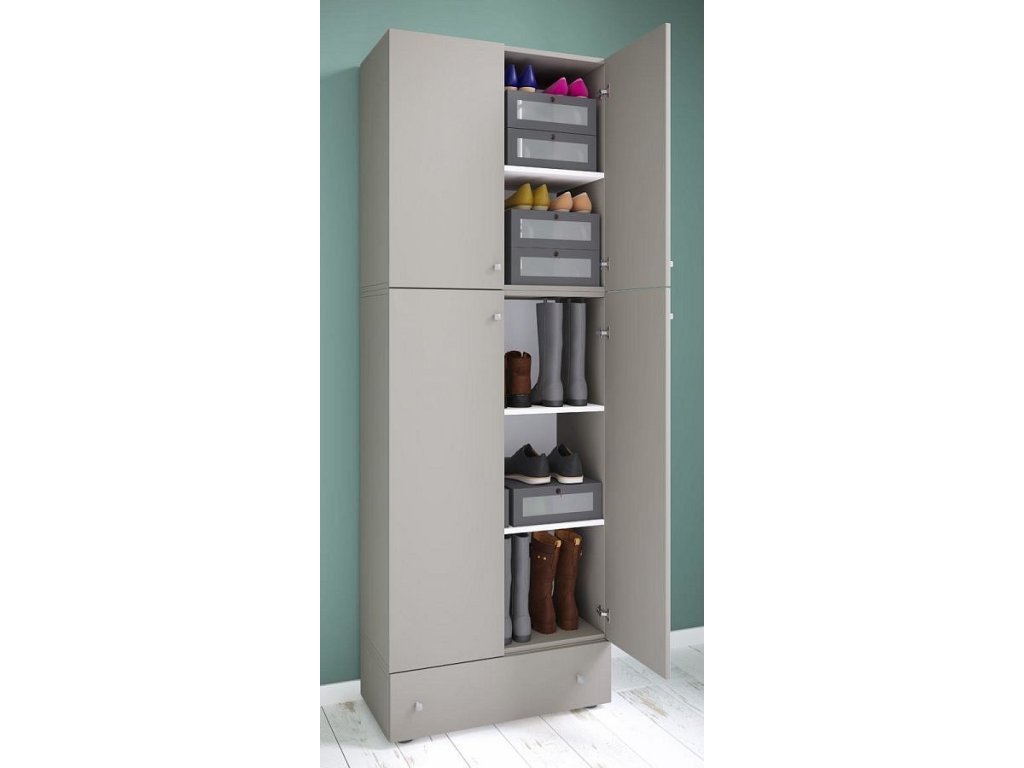 Botník Lona XXL s otočnými dvířky se zásuvkou, šedý