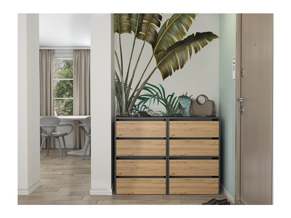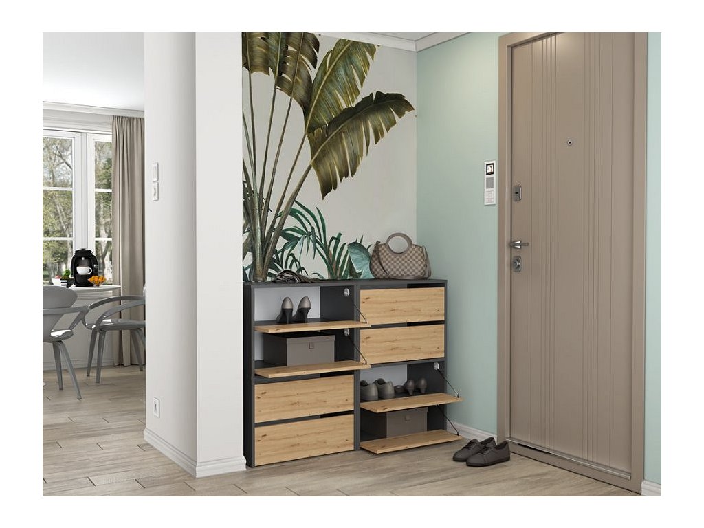 Moderní botník Modis bez úchytek je ideální volbou do každé předsíně. Pečlivé zpracování a elegantní linie dodají vaší předsíni styl i praktický úložný prostor. Botník je modulární - můžete jej prakticky libovolně rozšiřovat. Nábytek je vyroben z vysoce kvalitního lamina, které je snadno udržovatelné a odolné proti oděru.