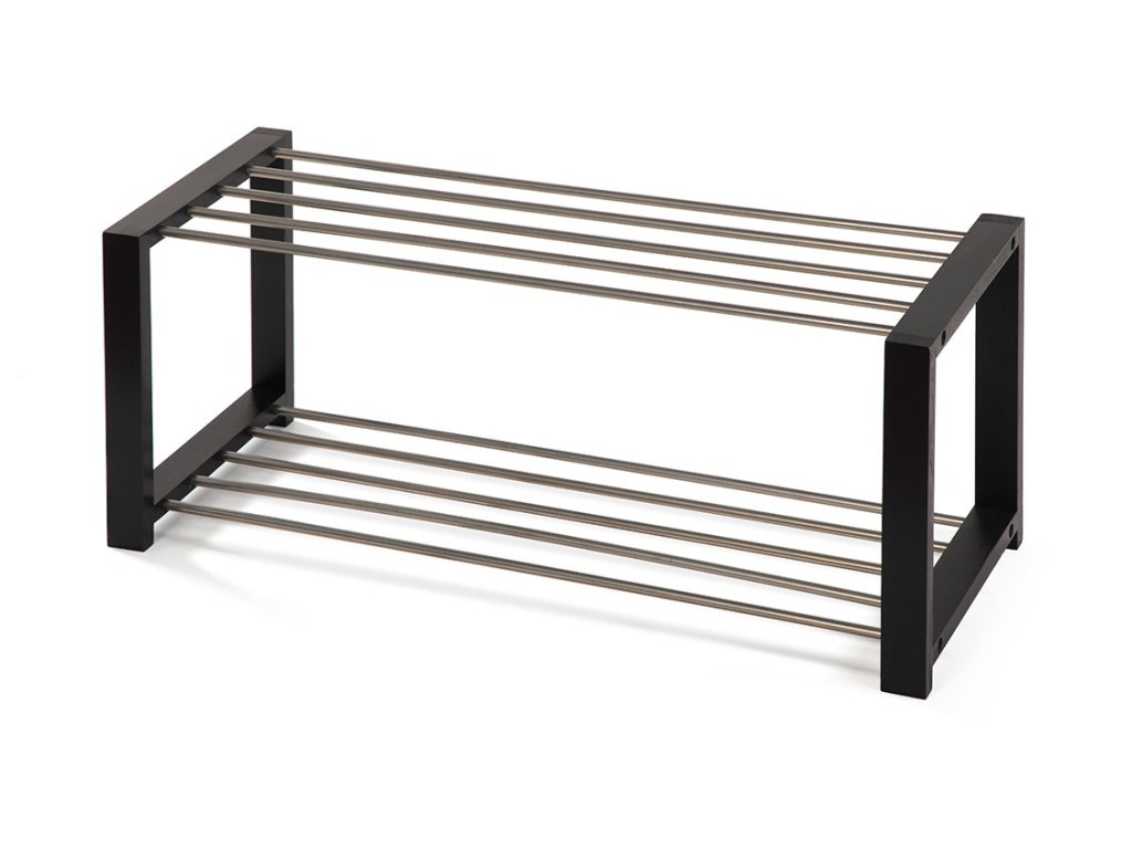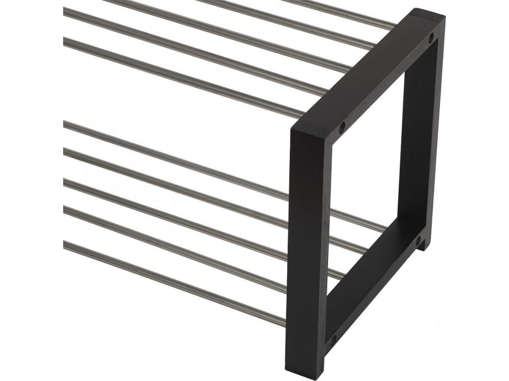 Botník s ocelovou konstrukcí v černé barvě a a ocelovými tyčemi ve stříbrné barvě, 32x80x30 cm.