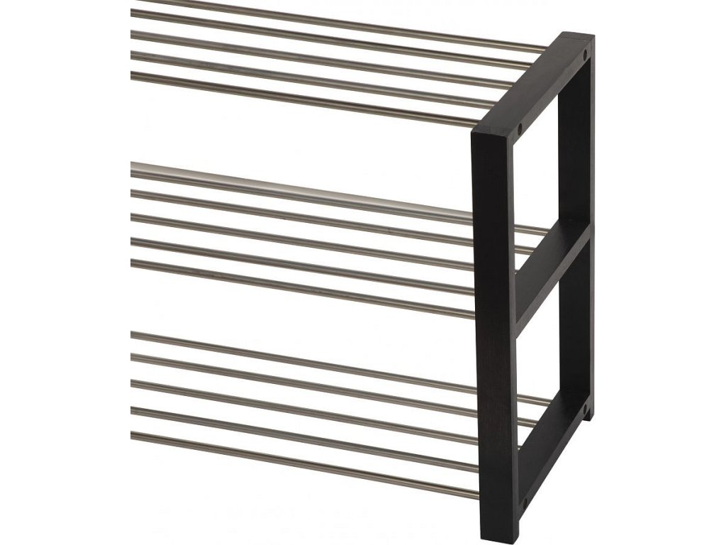 Botník s ocelovou konstrukcí v černé barvě a a ocelovými tyčemi ve stříbrné barvě.