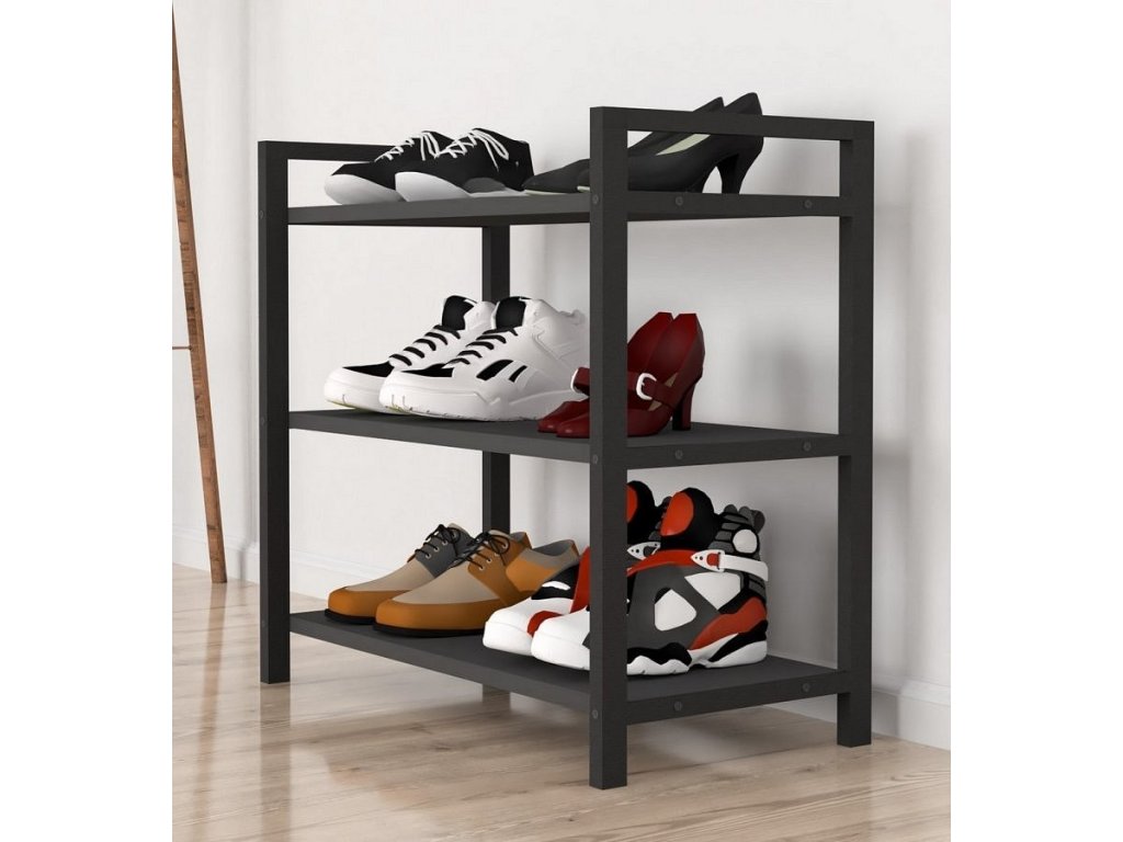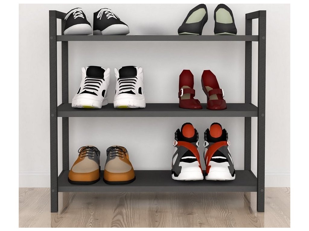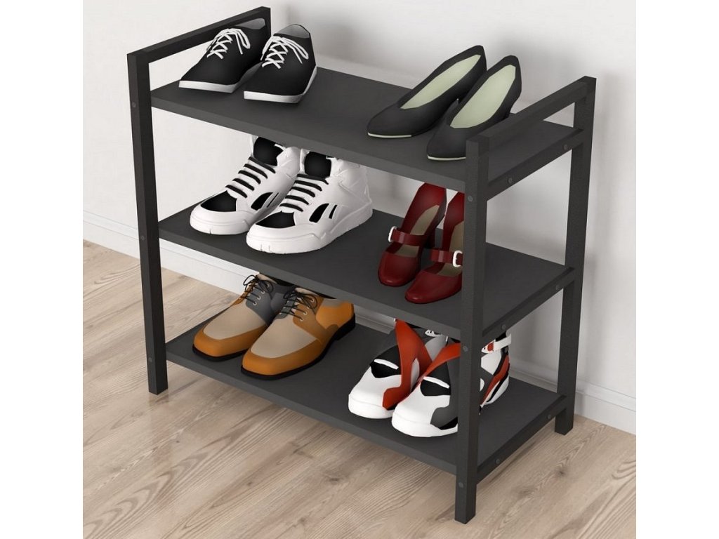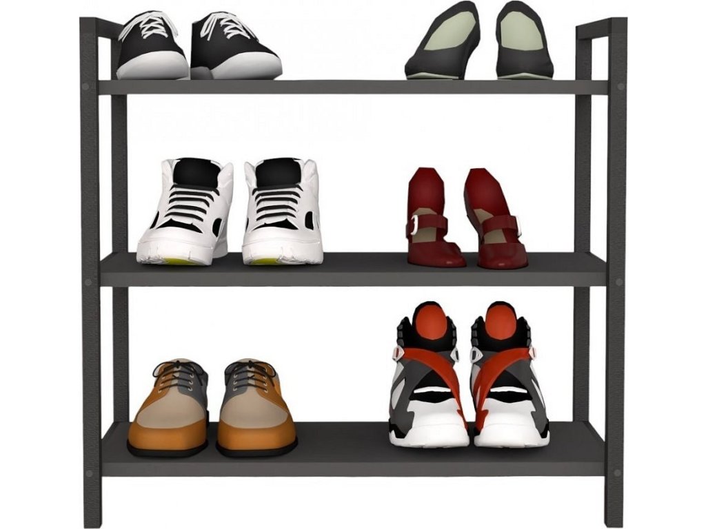 CASA 36008 Botník se třemi policemi je z kovového rámu v matné černé barvě a police jsou vyrobeny z kvalitní LTD desky. Barvené provedení polic je antracit. Dodáváme v demontovaném stavu.