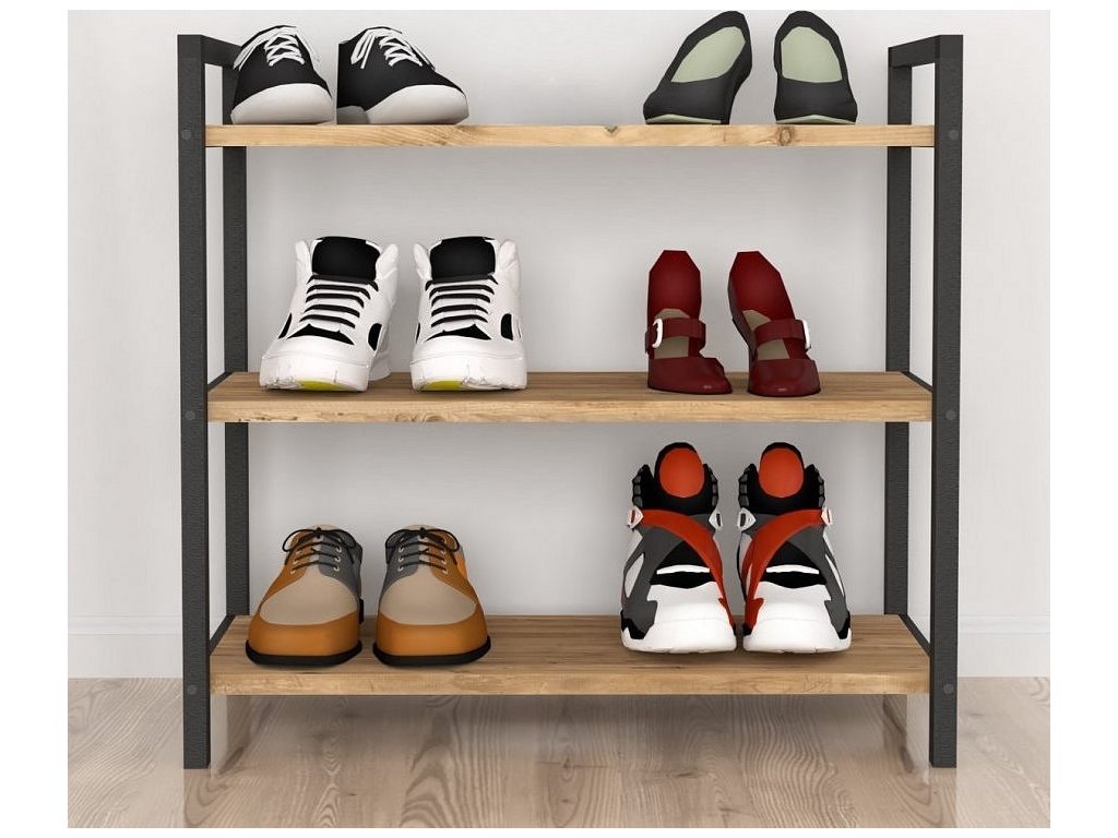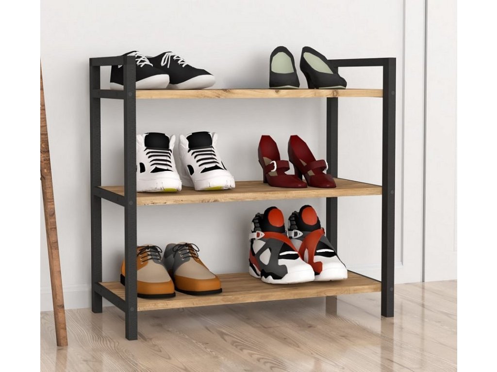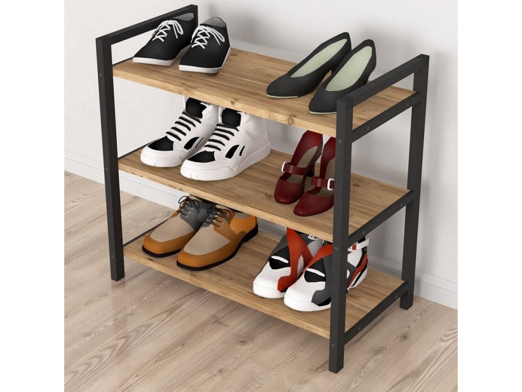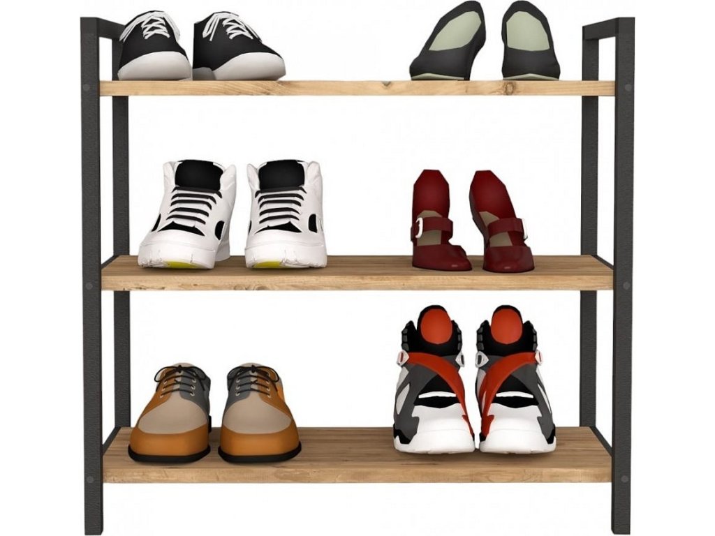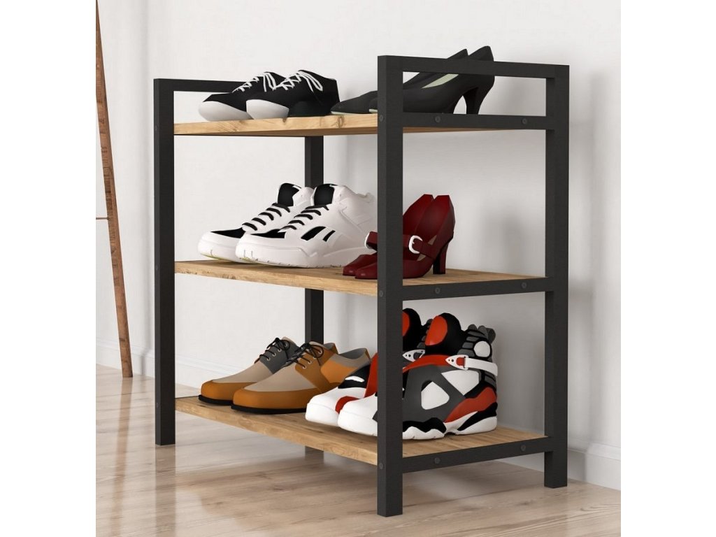 CASA 36008 Botník se třemi policemi je z kovového rámu v matné černé barvě a police jsou vyrobeny z kvalitní LTD desky v barvě borovice. Dodáváme v demontovaném stavu.