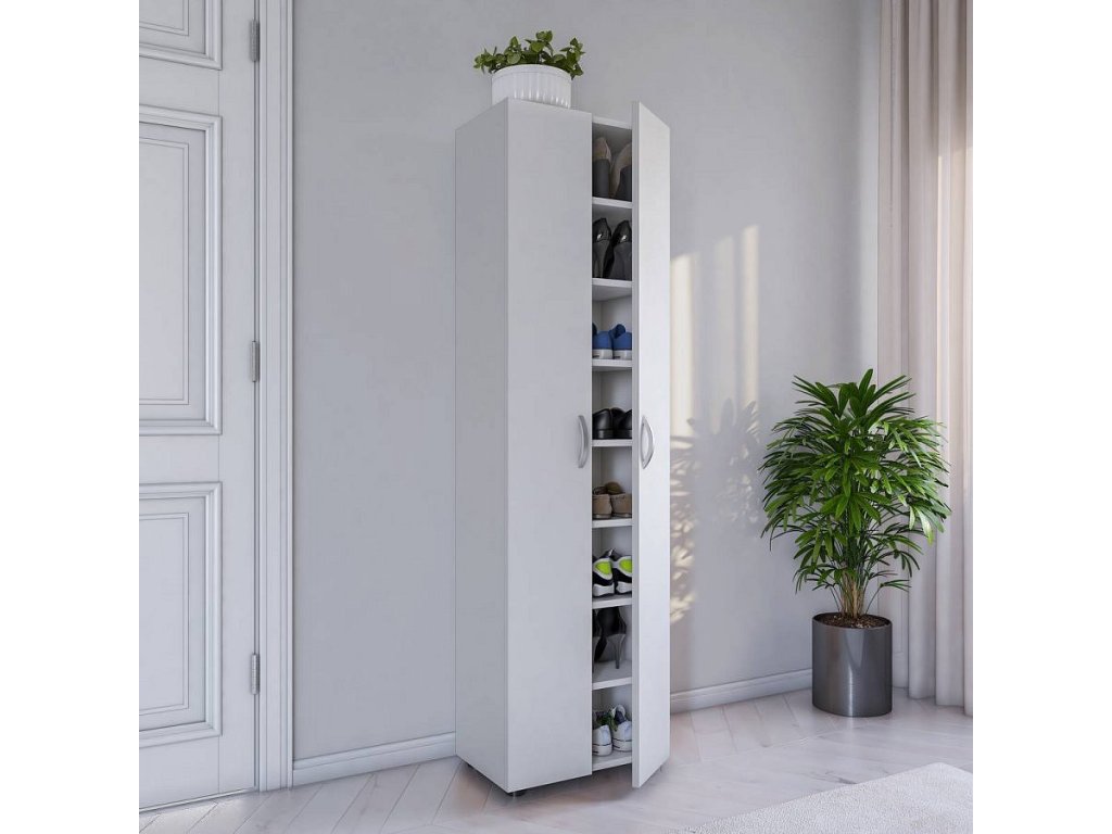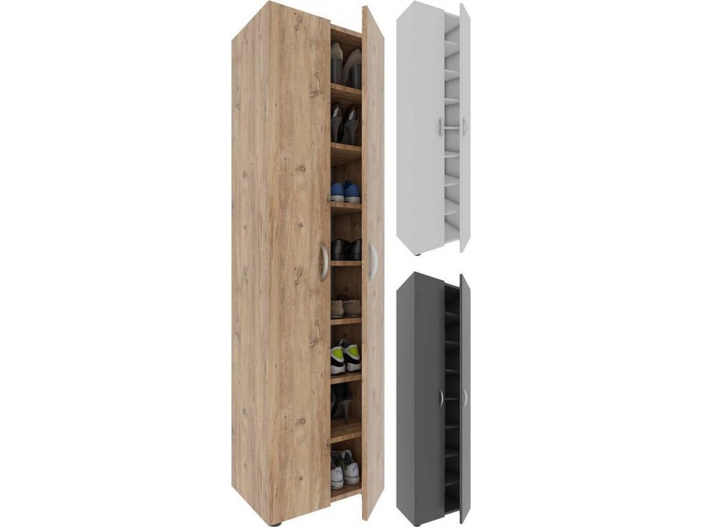 Vysoký botník VCM Ulas s 8 přihrádkami nabízí dostatek místa pro boty, kozačky i další doplňky každodenní potřeby. Díky dvěma otočným dveřím zůstává obsah skrytý a prostor působí vždy uklizeně.