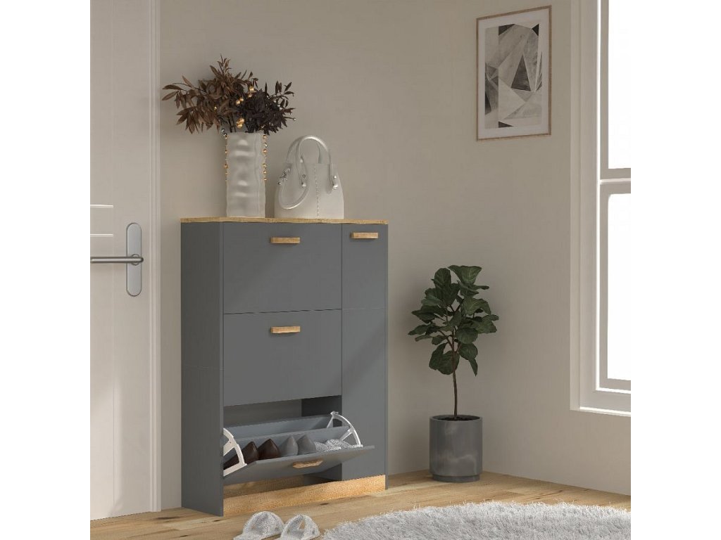 Hlavní vlastnosti: - Rozměry cca v. 105 x š. 80 x h. 24 cm - 3 přihrádky na pantech + 1 otočné dvířka - Pro cca 21 párů bot a kozaček Botník „Halom“ je malý prostorový zázrak s dostatkem úložného prostoru. Každá ze tří přihrádek na pantech má dělicí přepážku, takže boty lze úhledně a prostorově úsporně uložit. Za otočnými dvířky je další úložný prostor na boty nebo oblečení. Designér vytvořil zvláštní prvek pomocí barevných akcentů, které elegantně zvýrazňují úchytky a dělají z botníku nadčasový poutač. Vyklápěcí stojan na boty lze kombinovat s dalšími botníky z řady „VCM Halom“. Od 70. let 20. století se VCM specializuje na design, výrobu a distribuci nábytku s férovým poměrem cena/výkon a již zkrášlila miliony domácností.