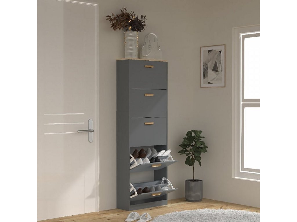 Hlavní vlastnosti: - Rozměry cca v. 170 x š. 59 x h. 22 cm - 5 otevíratelných přihrádek - Pro cca 30 párů bot Botník „Halom“ je malý prostorový zázrak s dostatkem úložného prostoru. Každá z pěti přihrádek je rozdělena tak, aby boty mohly být úhledně a prostorově úsporně uloženy. Designér vytvořil zvláštní akcent s barevnými akcenty, které elegantně zvýrazňují úchyty a dělají z botníku nadčasový poutač. Sklápěcí stojan na boty lze kombinovat s dalšími botníky z řady „VCM Halom“. Od 70. let 20. století se VCM specializuje na design, výrobu a distribuci nábytku s férovým poměrem cena/výkon a již zkrášlila miliony domácností.