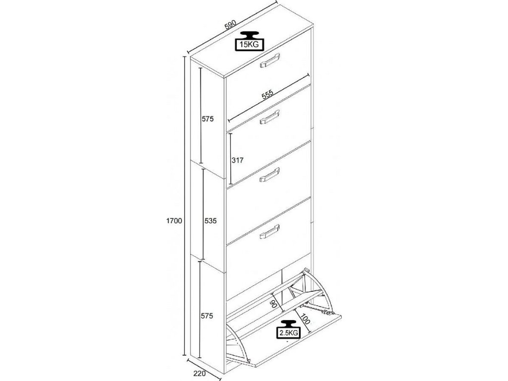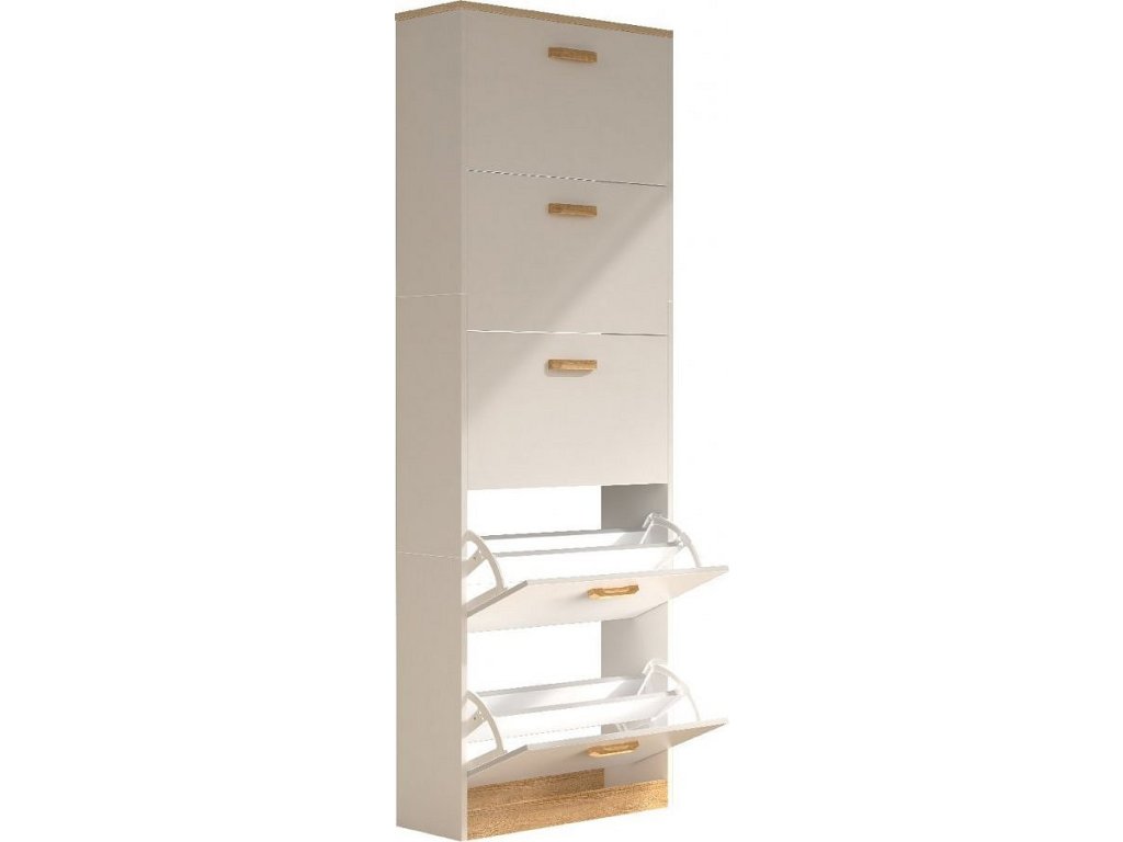 Hlavní vlastnosti: - Rozměry cca v. 170 x š. 59 x h. 22 cm - 5 otevíratelných přihrádek - Pro cca 30 párů bot Botník „Halom“ je malý prostorový zázrak s dostatkem úložného prostoru. Každá z pěti přihrádek je rozdělena tak, aby boty mohly být úhledně a prostorově úsporně uloženy. Designér vytvořil zvláštní akcent s barevnými akcenty, které elegantně zvýrazňují úchyty a dělají z botníku nadčasový poutač. Sklápěcí stojan na boty lze kombinovat s dalšími botníky z řady „VCM Halom“. Od 70. let 20. století se VCM specializuje na design, výrobu a distribuci nábytku s férovým poměrem cena/výkon a již zkrášlila miliony domácností.
