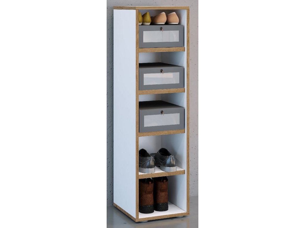 Hlavní vlastnosti: - Kování z vysoce kvalitního kovu - Pět přihrádek až pro 5 párů bot - Rozměry nábytku: cca v. 110 x š. 30 x h. 33 cm Botník „Salia“ je malý prostorový zázrak. Nabízí kombinaci úložného prostoru a dekorace jako žádný jiný kus nábytku. Pět přihrádek poskytuje dostatek místa pro pět párů bot nebo jiné náčiní. Komodu lze kombinovat s dalším nábytkem z řady „VCM Salia“. Od 70. let 20. století se VCM specializuje na design, výrobu a distribuci nábytku s férovým poměrem cena/výkon a již zkrášlila miliony domácností.