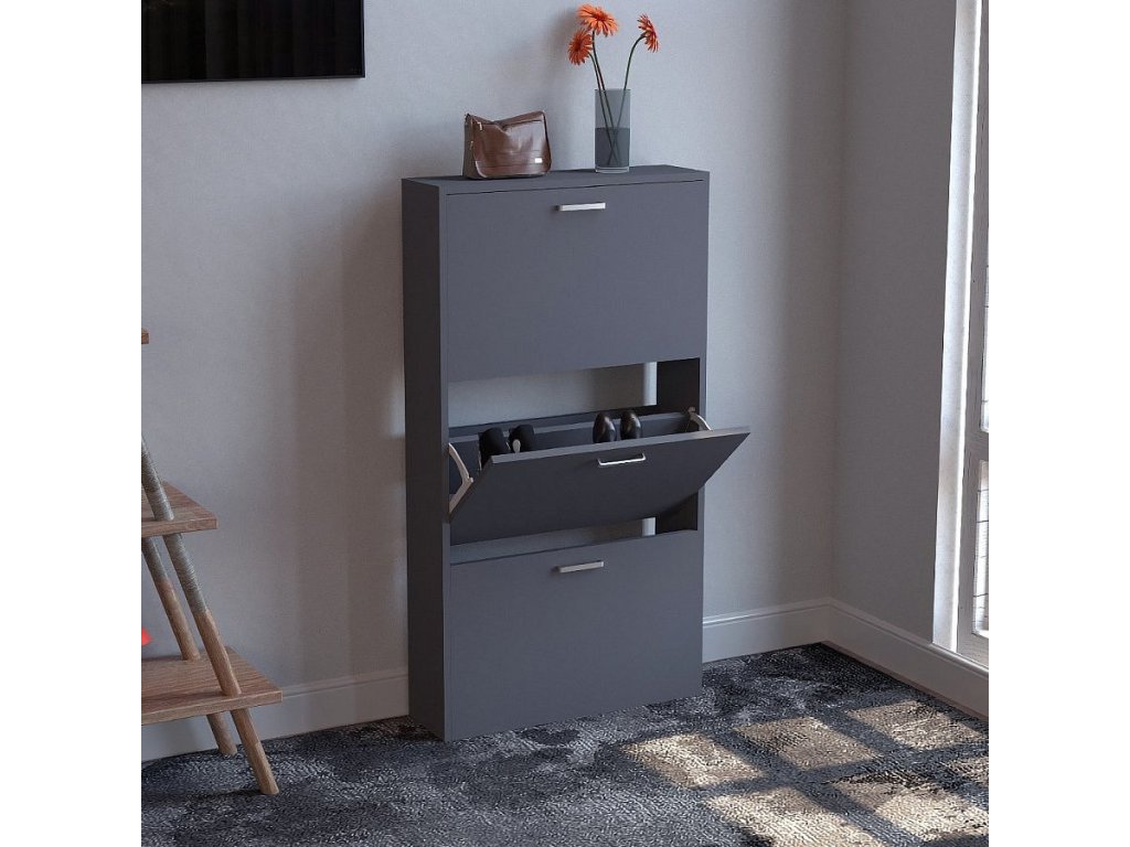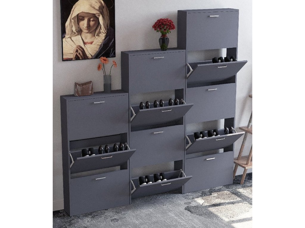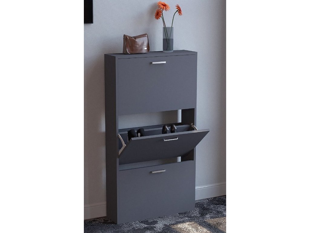 Botník: - Rozměry cca v. 108 x š. 59 x h. 17 cm - 3 přihrádky lze otevřít - Pro cca 9 párů bot Botník „Sulos M“ se 2 zásuvkami se perfektně hodí do chodby. S hloubkou pouhých 17 cm se volně stojící botník perfektně hodí do chodby a umožňuje vám uložit všechny boty na jednom místě a zároveň je udržovat v pořádku. Sklápěcí botník lze kombinovat s dalšími botníky z řady „VCM Sulos“. Od 70. let 20. století se VCM specializuje na návrh, výrobu a distribuci nábytku s férovým poměrem cena/výkon a již zkrášlila miliony domácností.