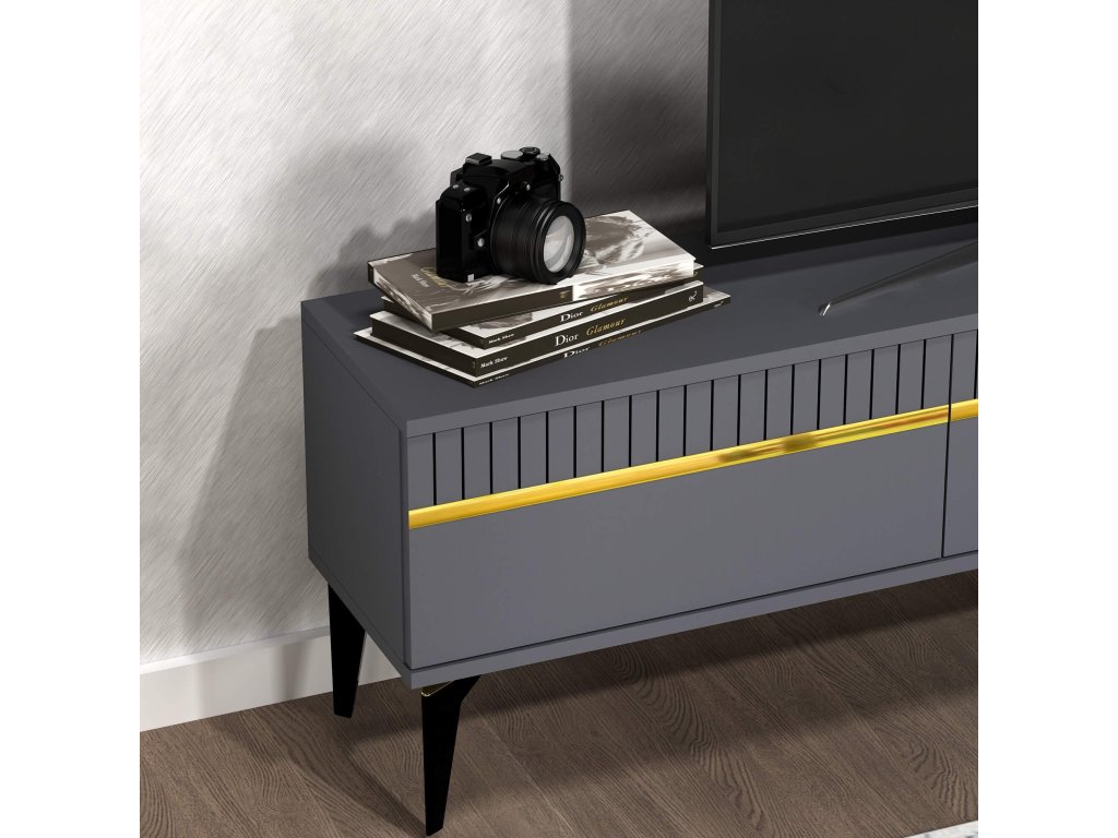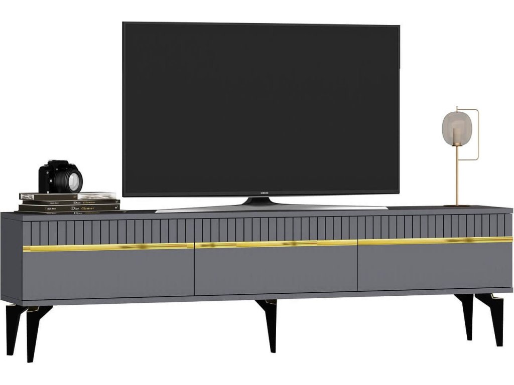 BREVIG TV stolek na nožičkách, antracit / zlatá