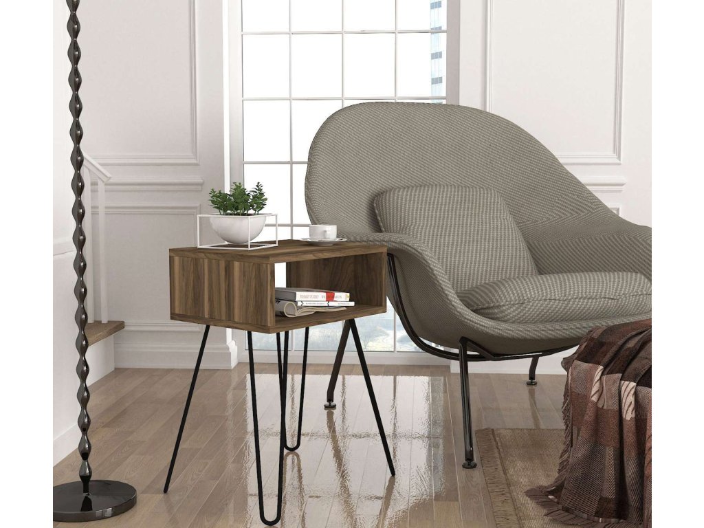 Stolek vyniká svým ořechovým designem a obdélníkovým tvarem, který je nejen praktický, ale i esteticky atraktivní. Díky odkládací polici poskytuje dostatek úložného prostoru pro vaše knihy, časopisy nebo dekorace. Kombinace LTD materiálu o tloušťce 18 mm a kovu zajišťuje pevnost a dlouhou životnost tohoto stolku.