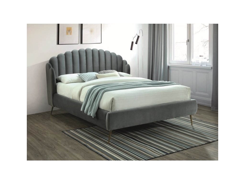 Postel je čalouněná. Použitá je kvalitní látka Bluvel 14 v šedé barvě. Elegantní nožičky jsou ve zlaté barvě.