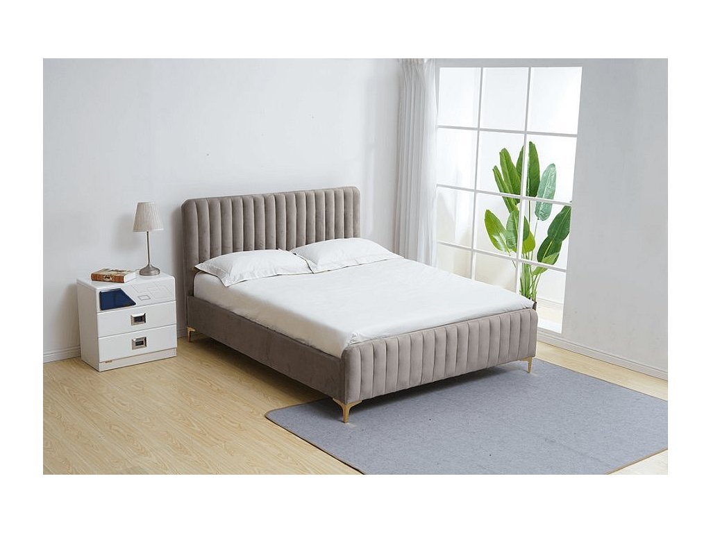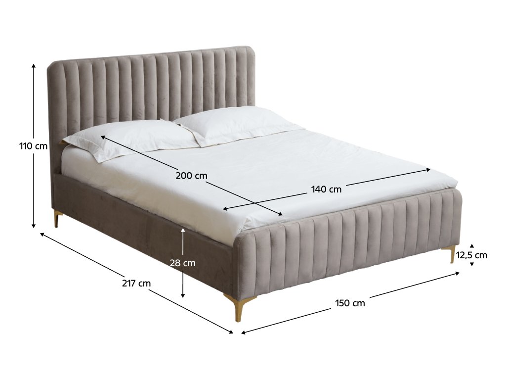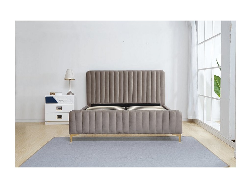 Čalouněná postel KAISA 140x200, šedohnědá Taupe/gold chrom matný