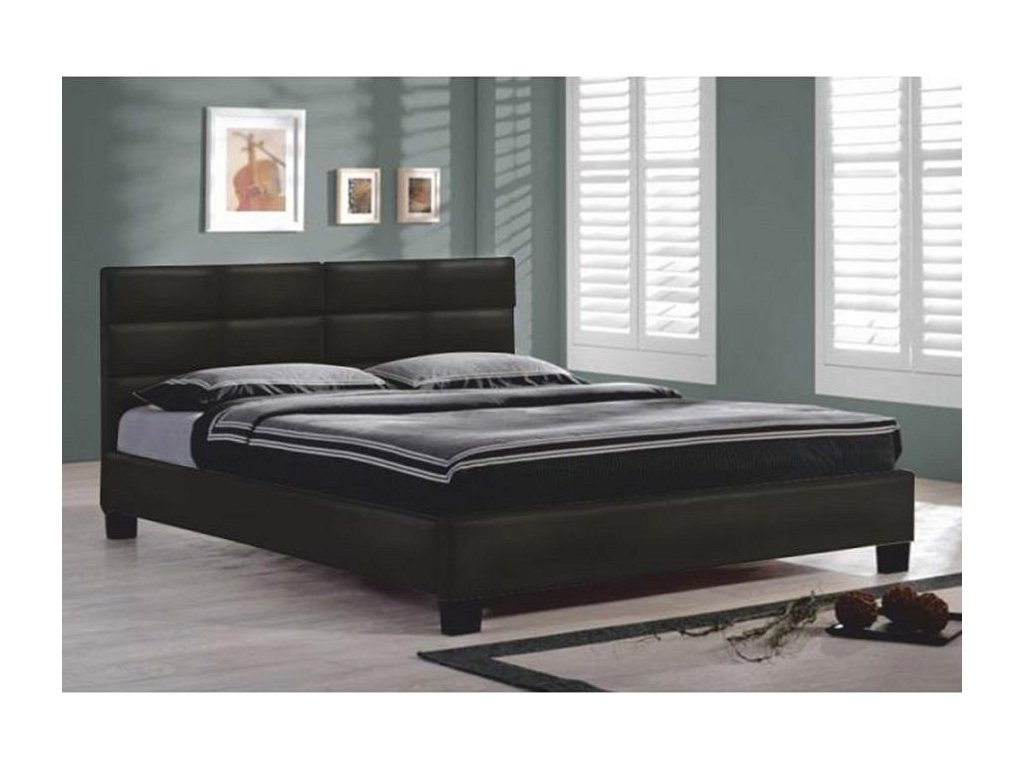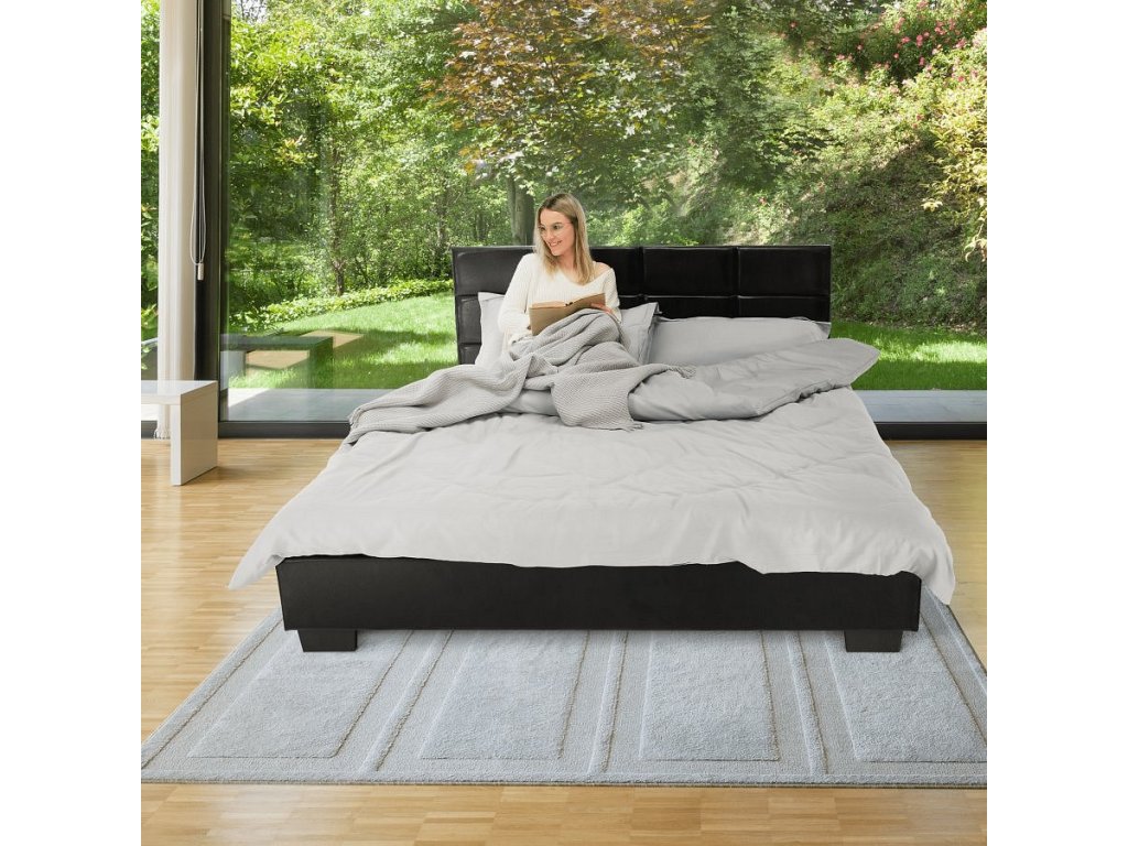 Postel MIKEL s prošívaným čelem, s lamelovým roštem. Barevné provedení černá koženka.