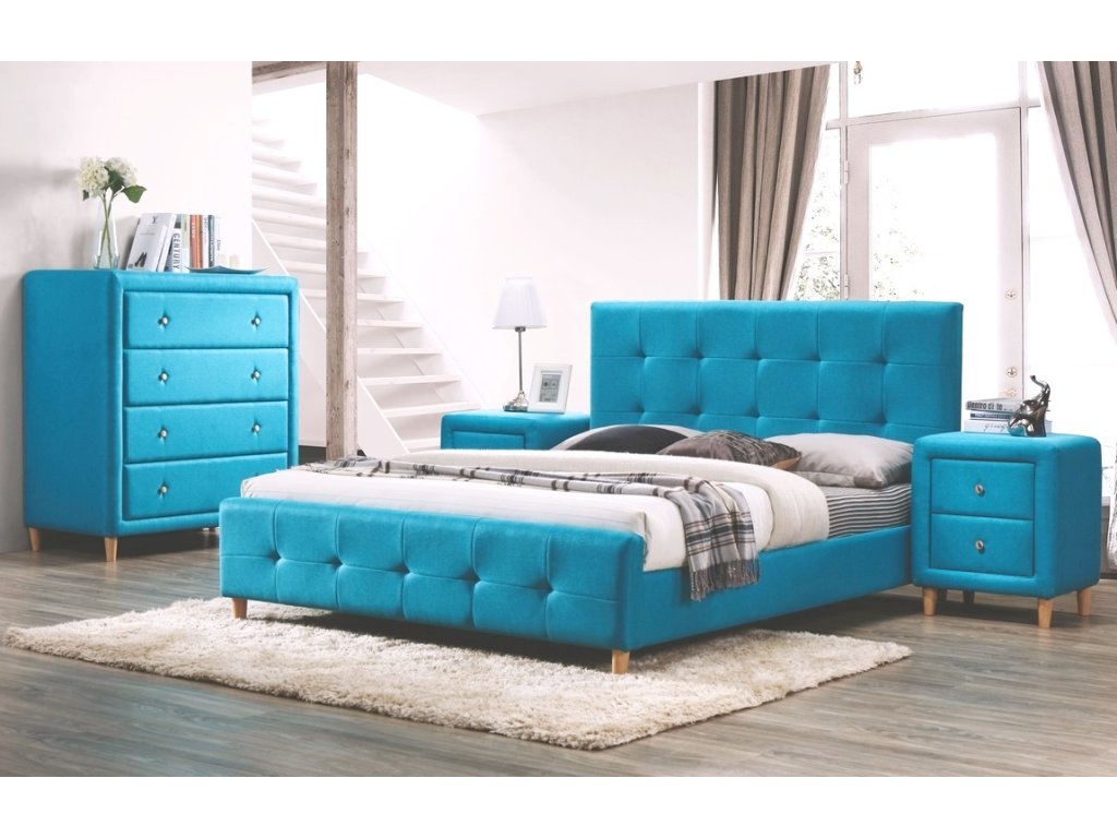 CASA 95010 Noční stolek stylového rázu. Je čalouněný kvalitní potahovou látkou v nádherné barvě Tiffany blue tyrkys. Stolek má dvě zásuvky a stojí na dřevěných nožkách.